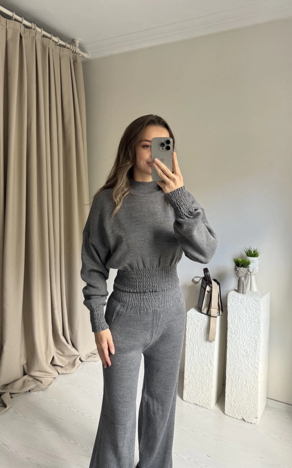 Antrasit Üçlü Konfor Seti (bluz+hırka+eşofman)