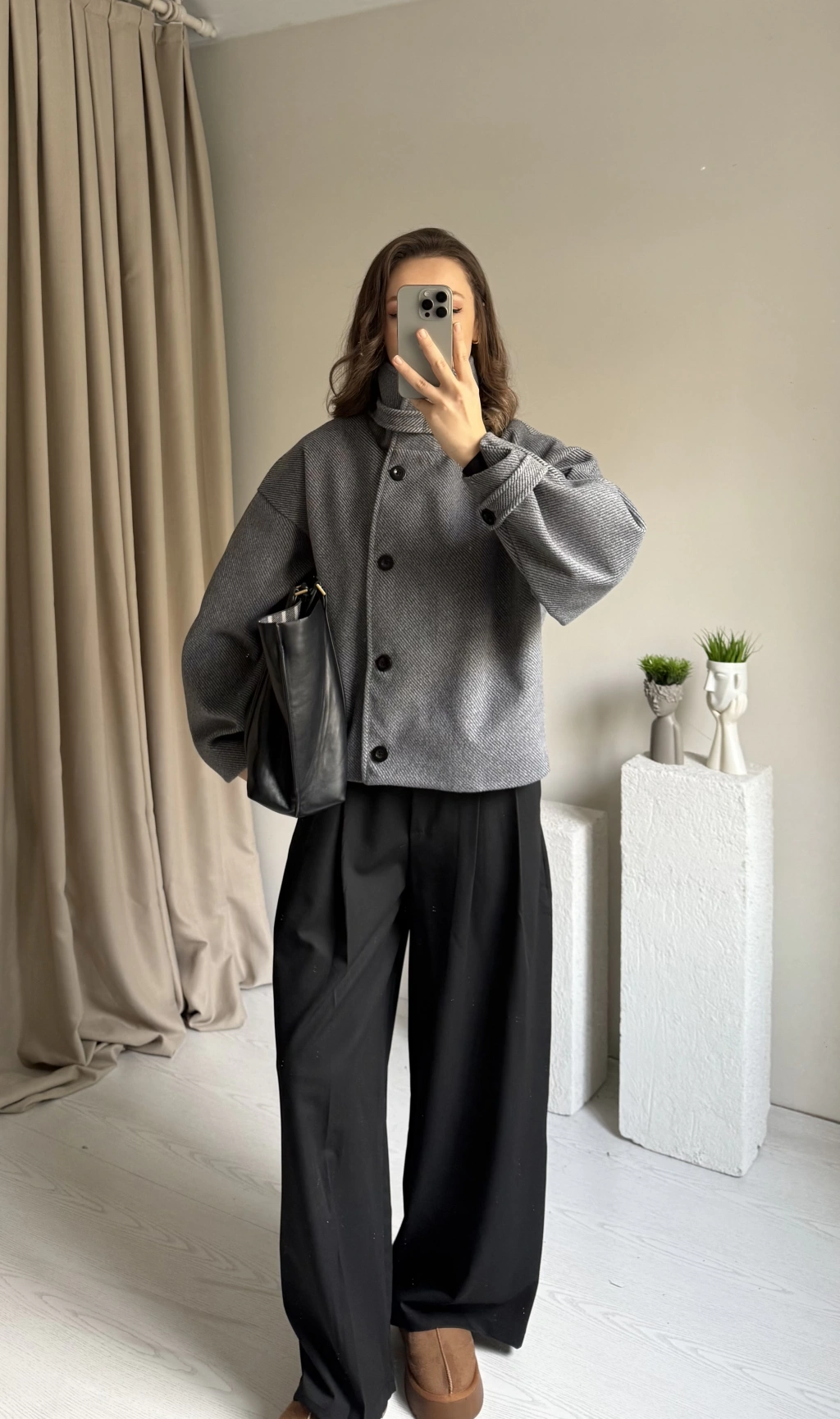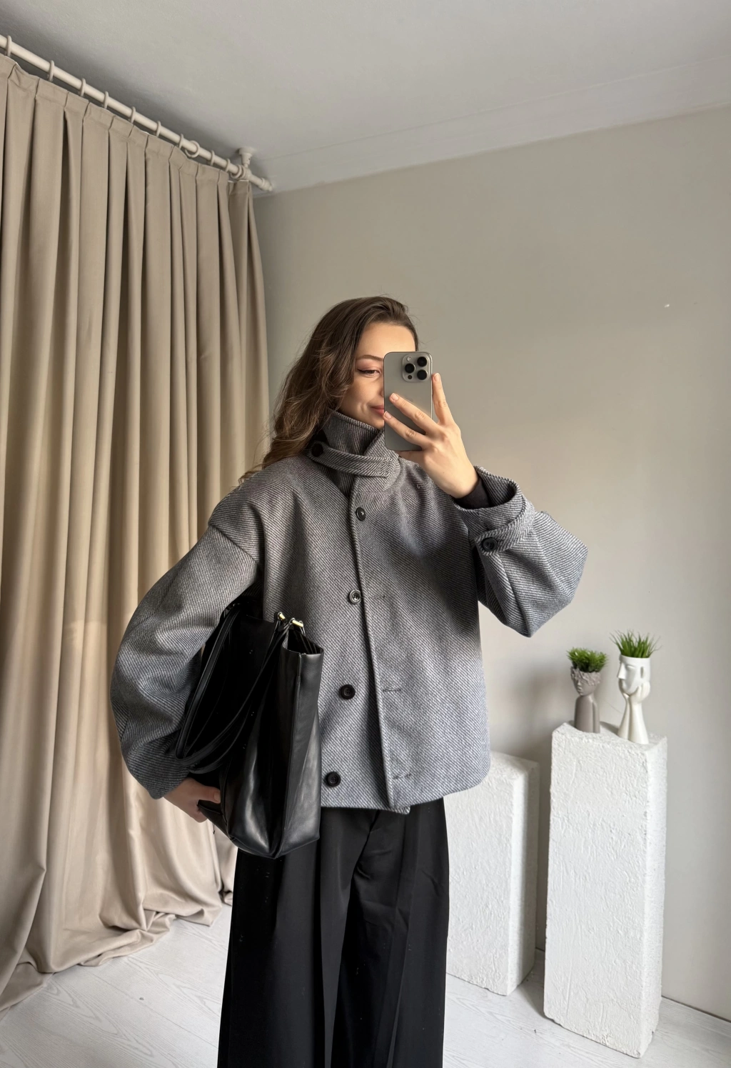 Antrasit Kaşe Dik Yaka Panço