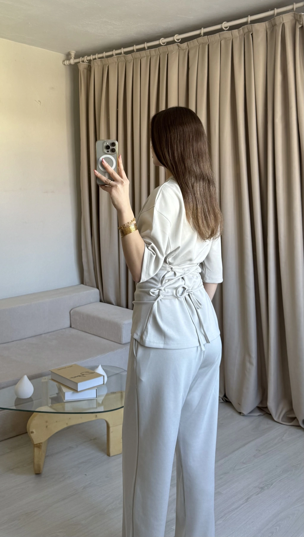 Bej Bel Bağlamalı Eşofman Takım