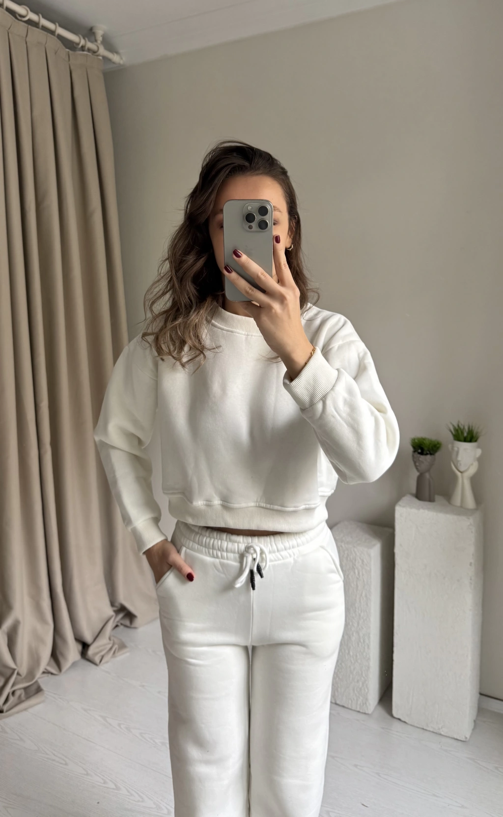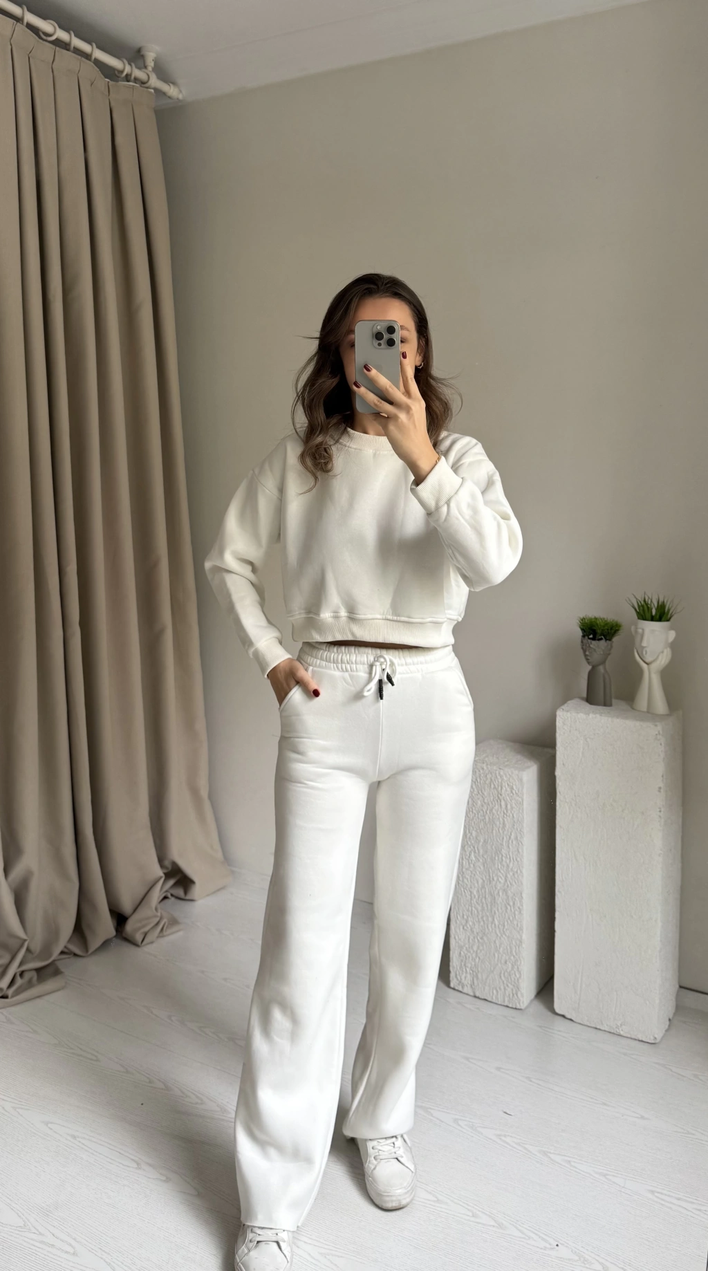Beyaz 3 İplik Şardonlu Eşofman Takımı