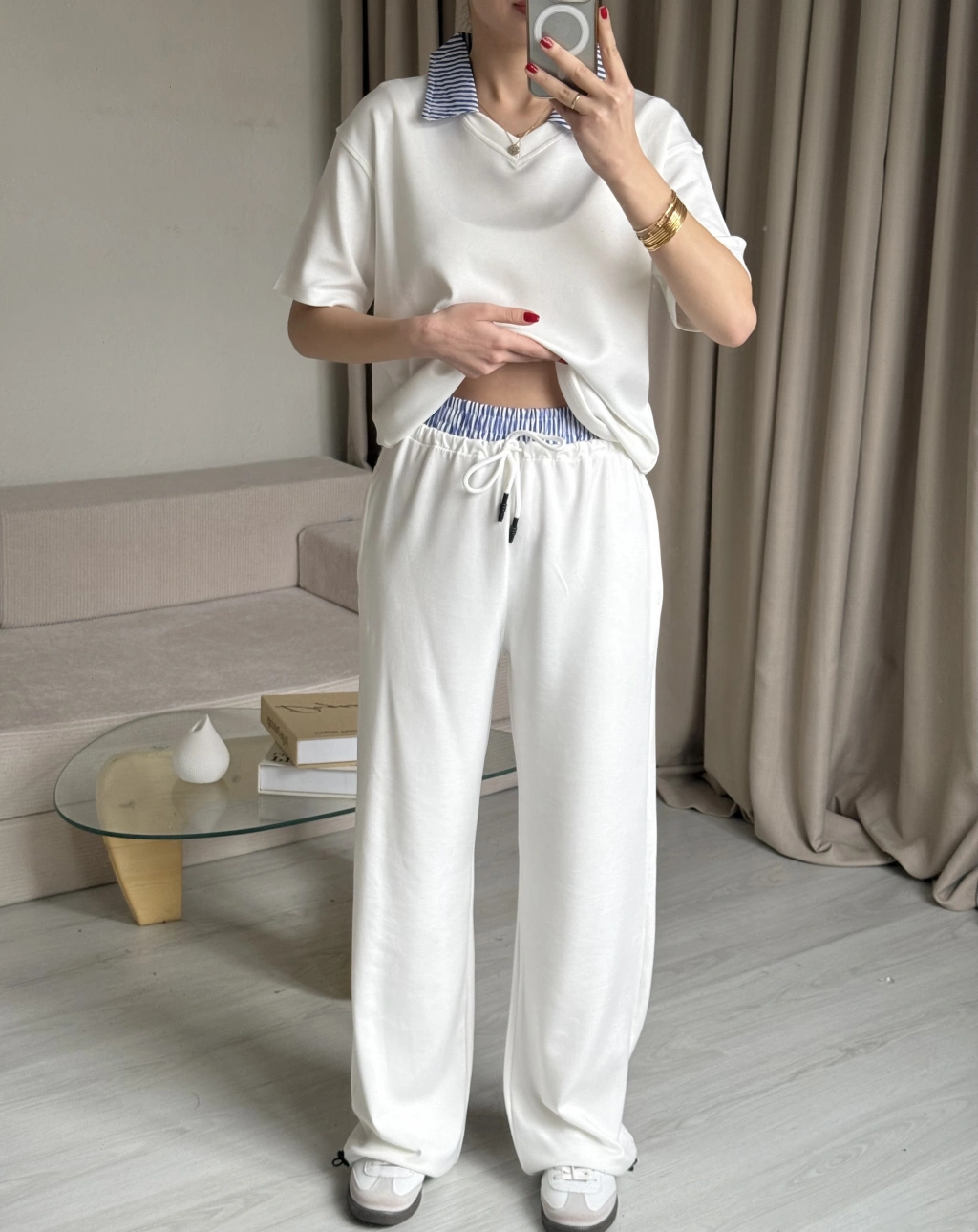 Beyaz Gömlek Yaka Eşofman Takım