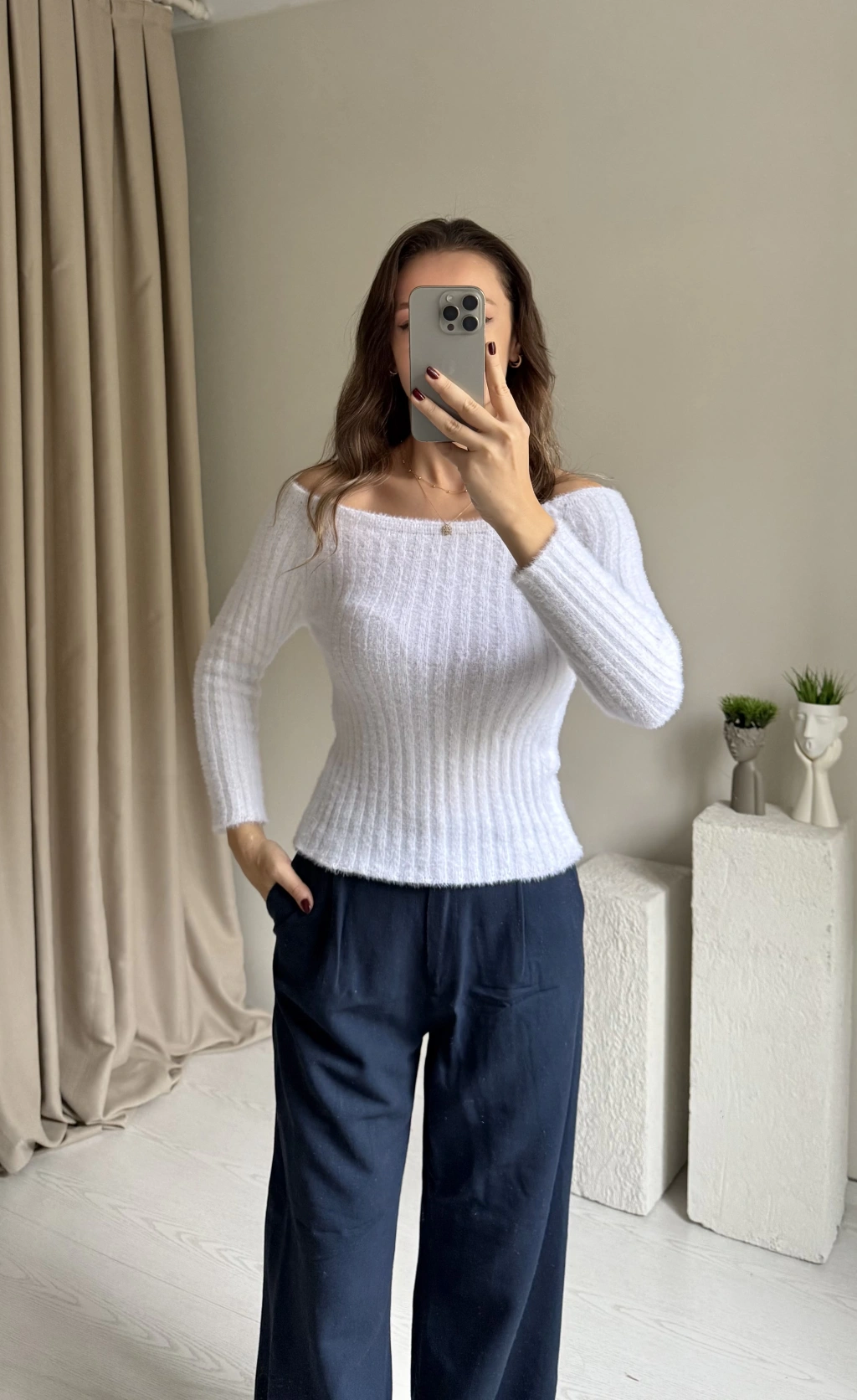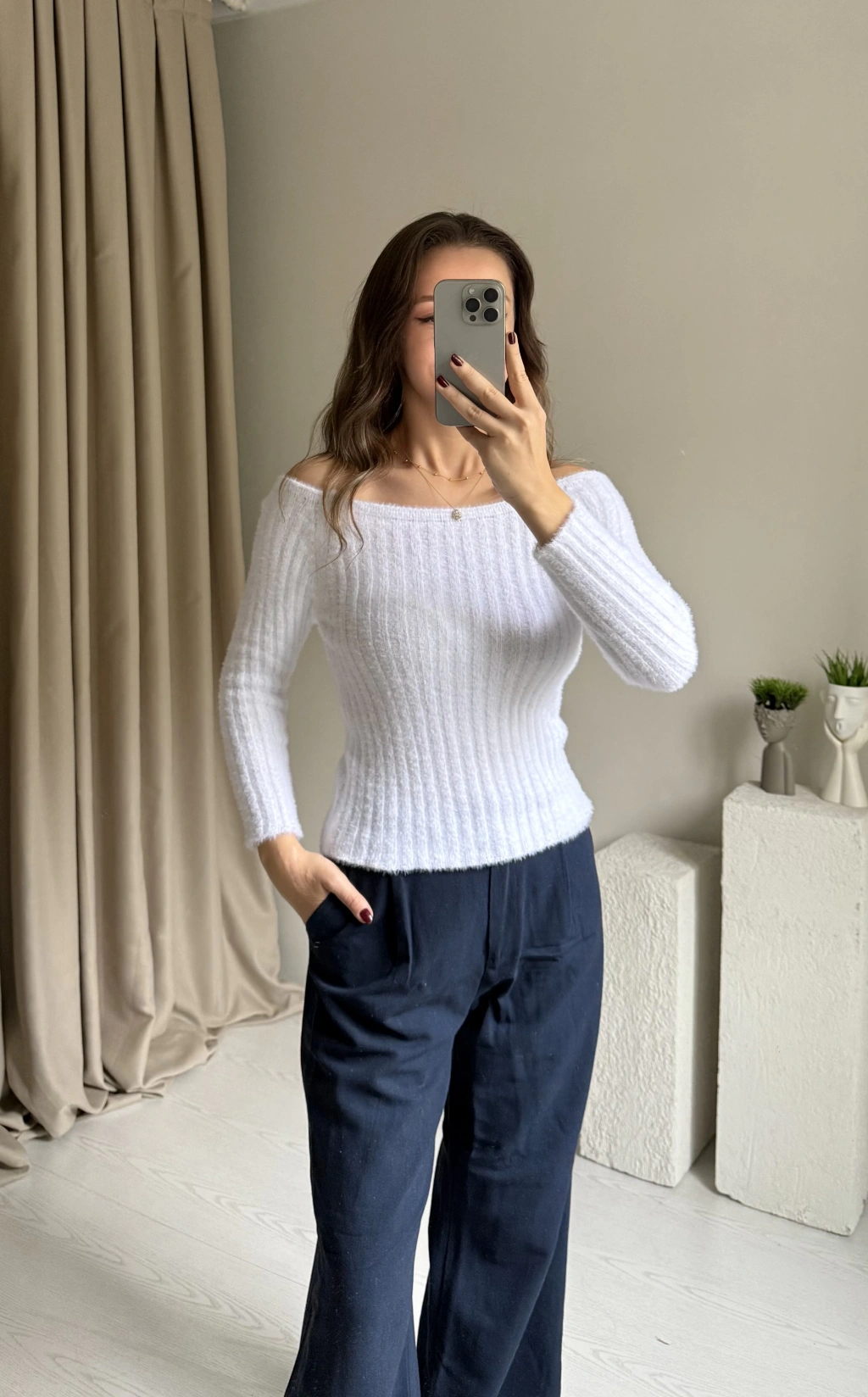 Beyaz Üçlü Konfor Seti (bluz+hırka+eşofman)