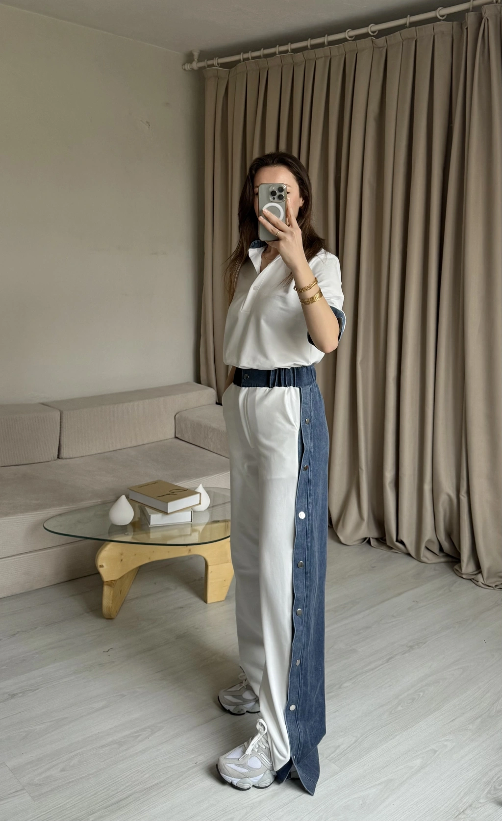 Beyaz Yanları Çıtçıtlı Tasarım Takım