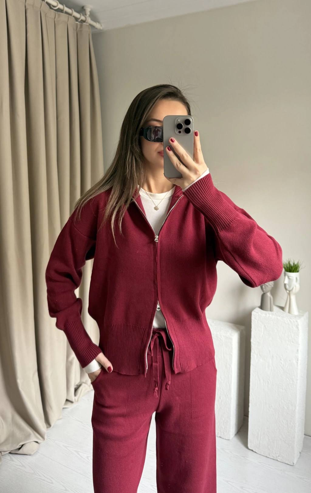 Bordo Çift Fermuarlı Viral Takım