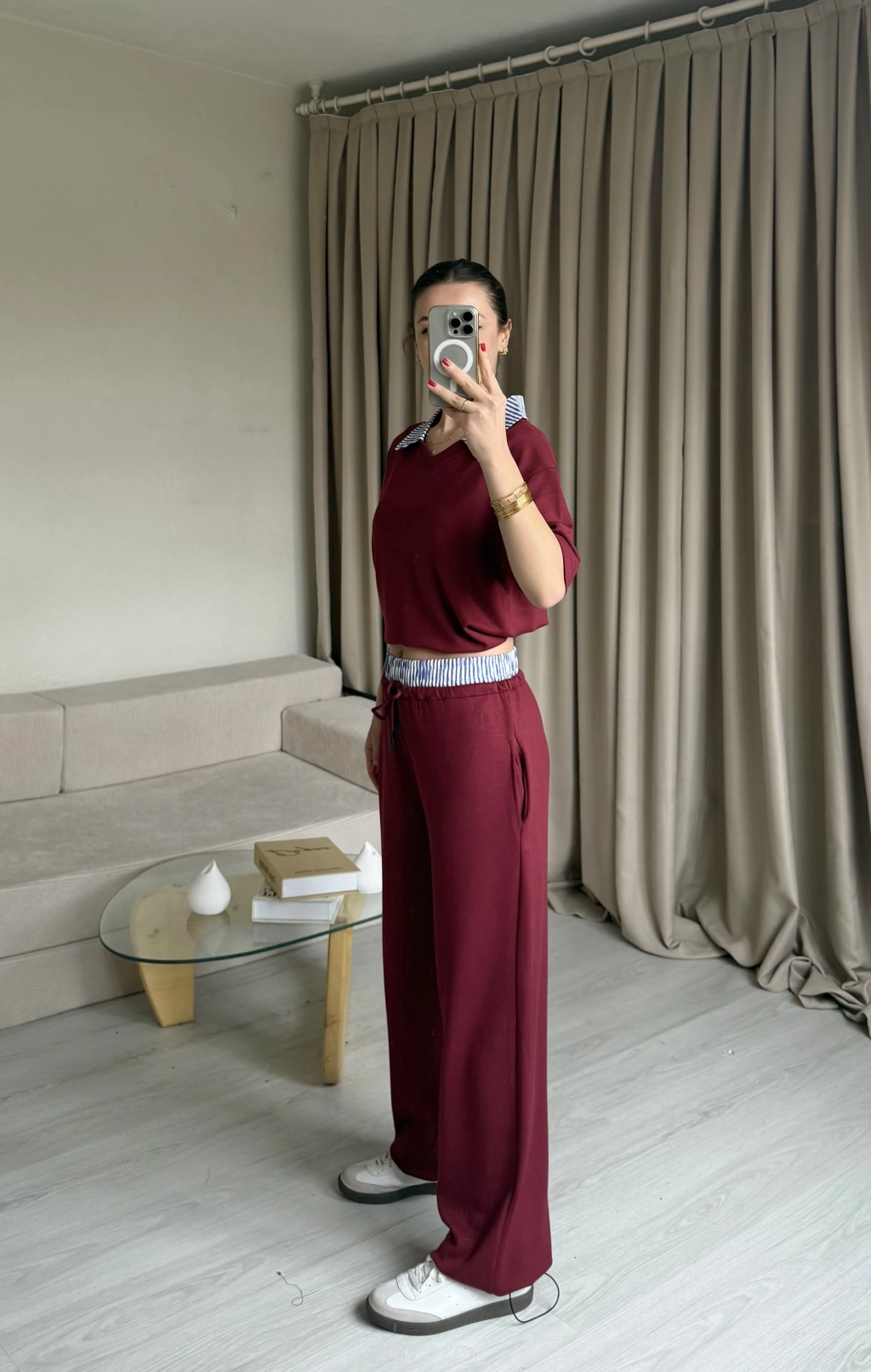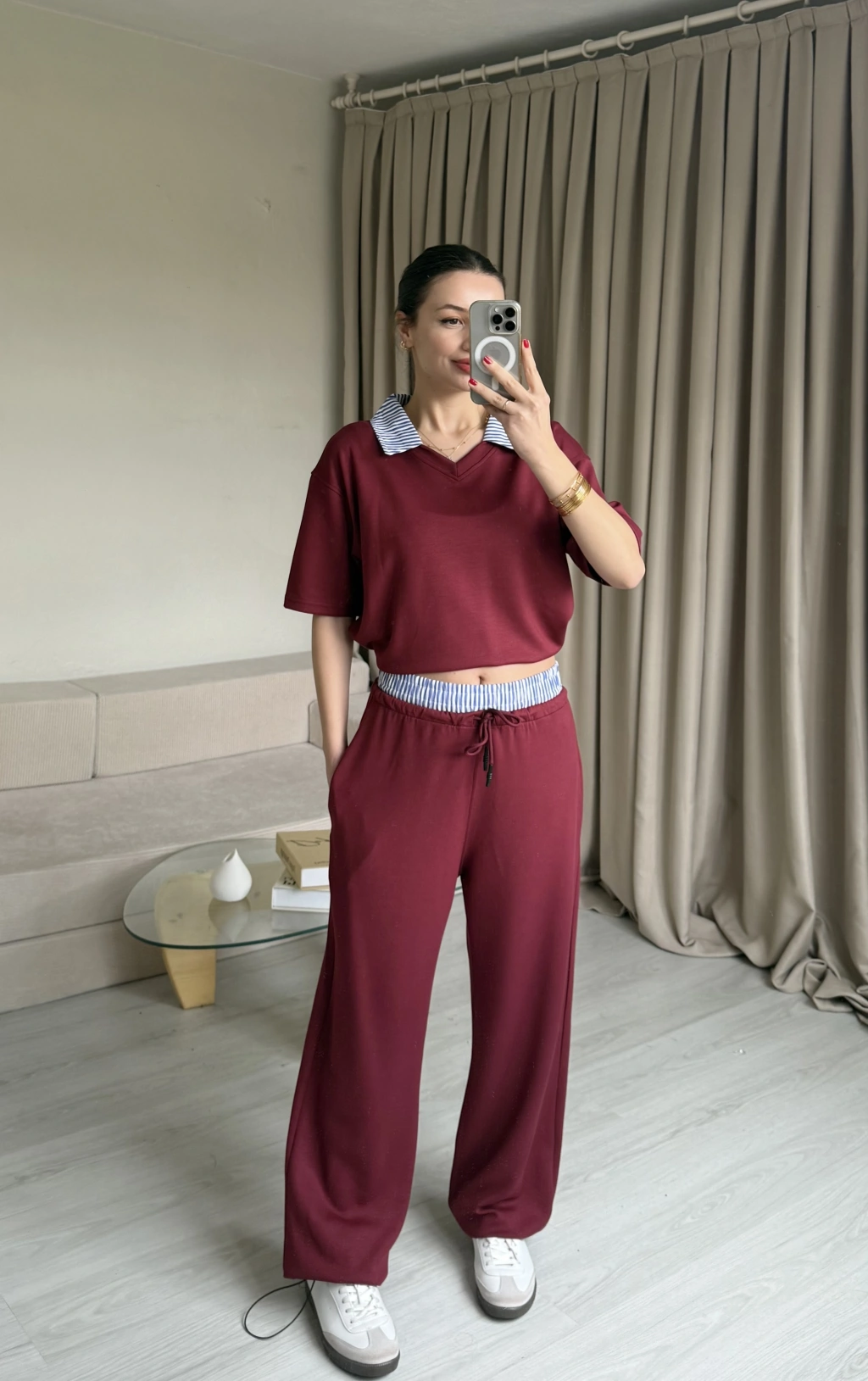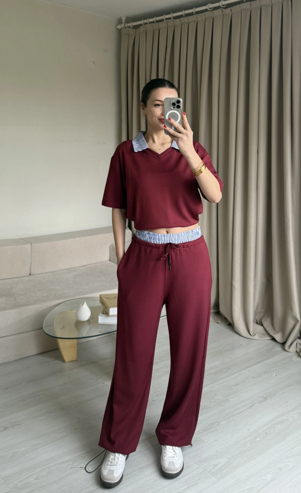 Bordo Gömlek Yaka Eşofman Takım
