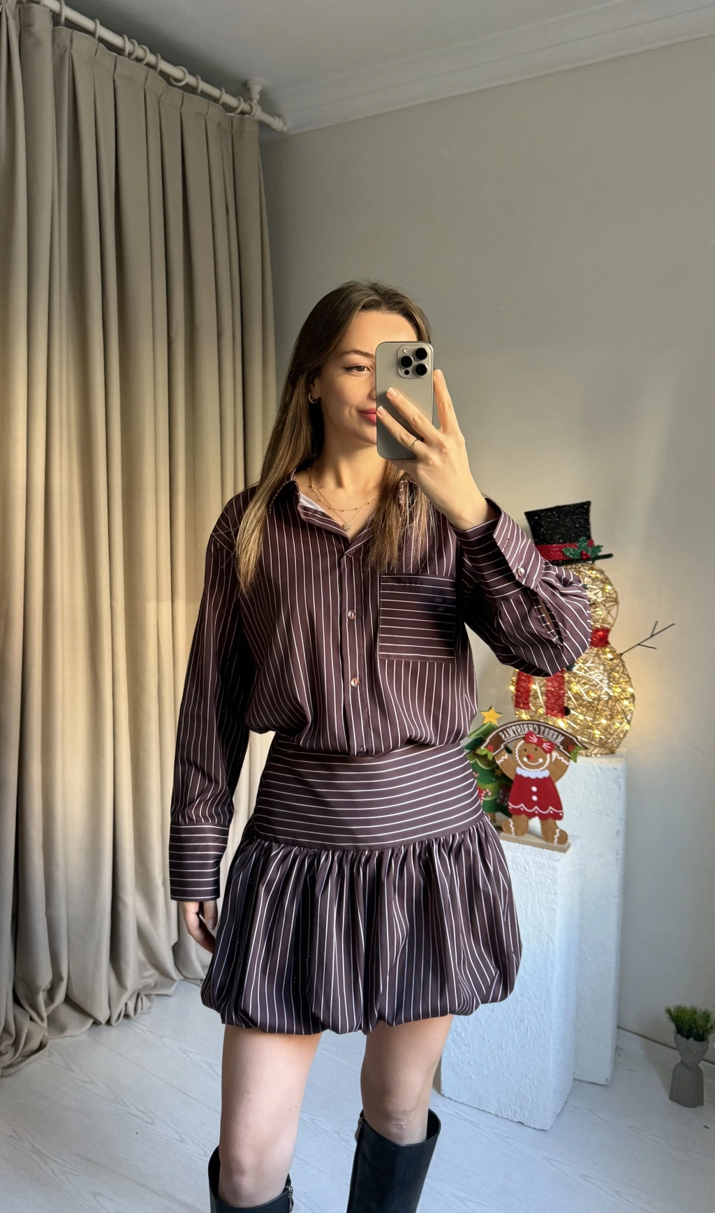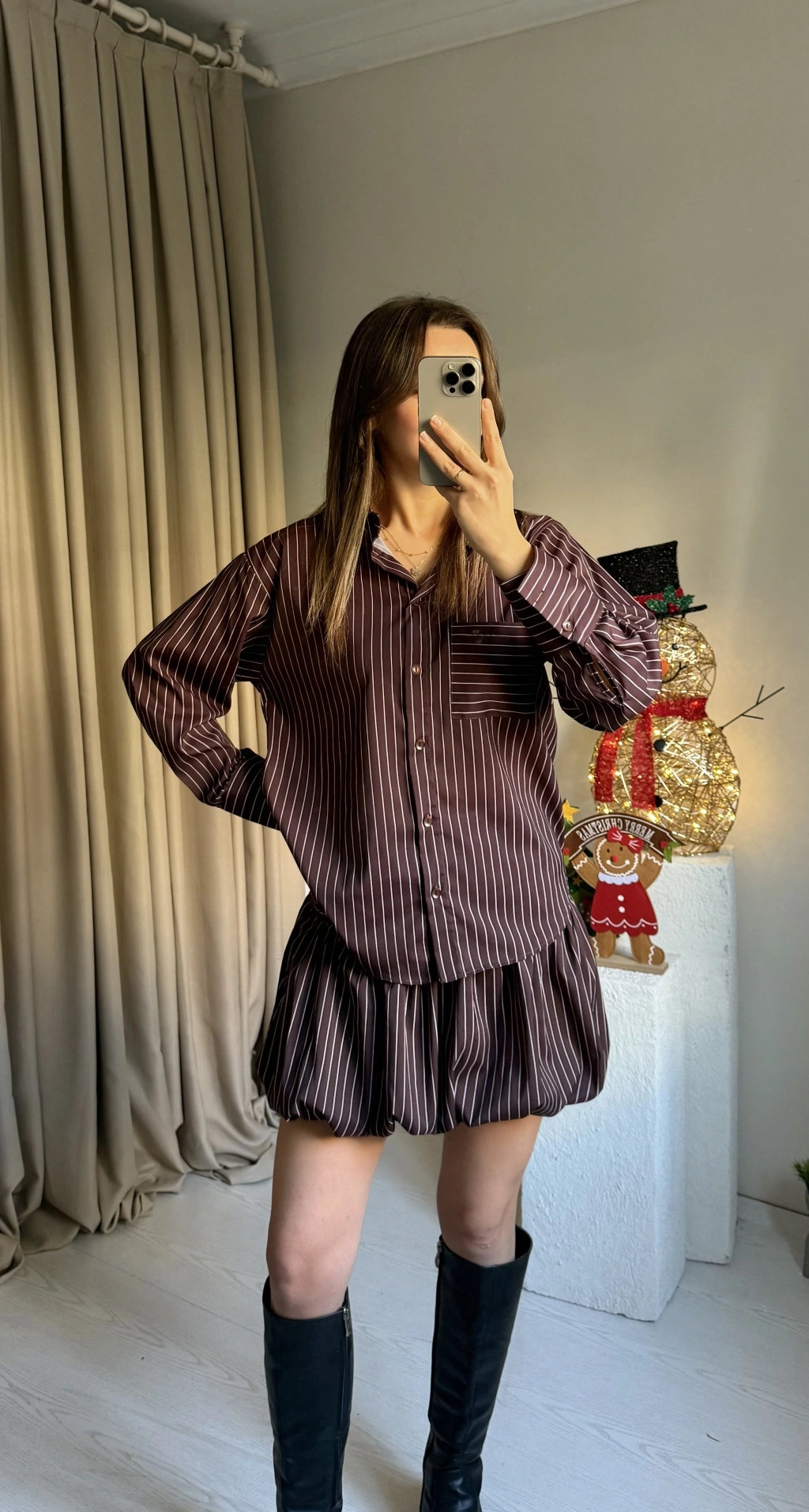 Çizgili Şort Etekli Gömlek Takım