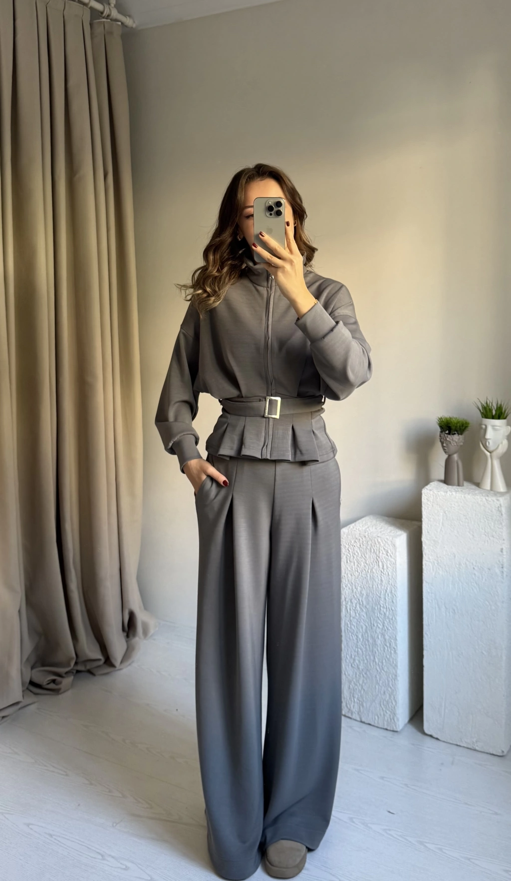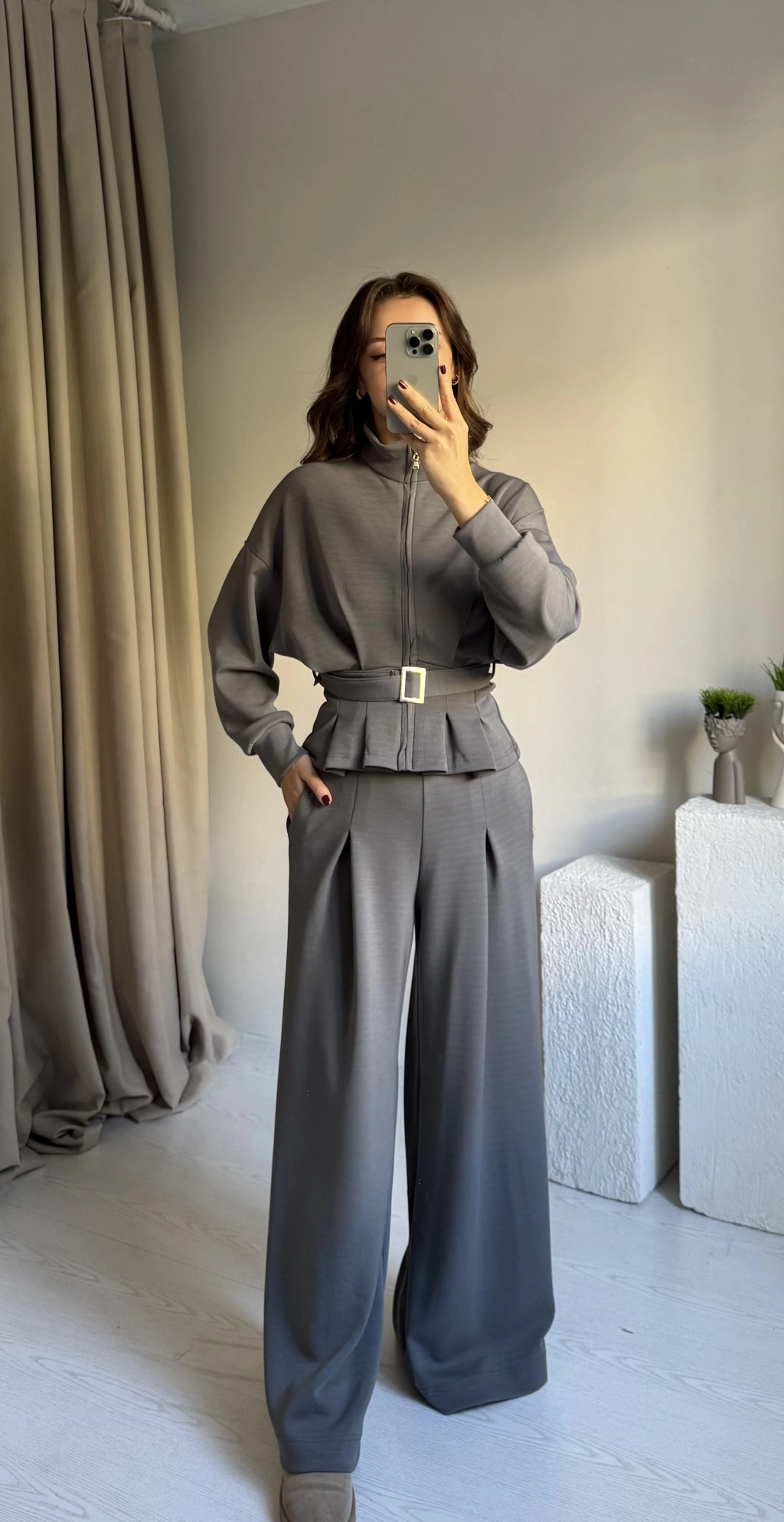 Antrasit Üçlü Konfor Seti (bluz+hırka+eşofman)