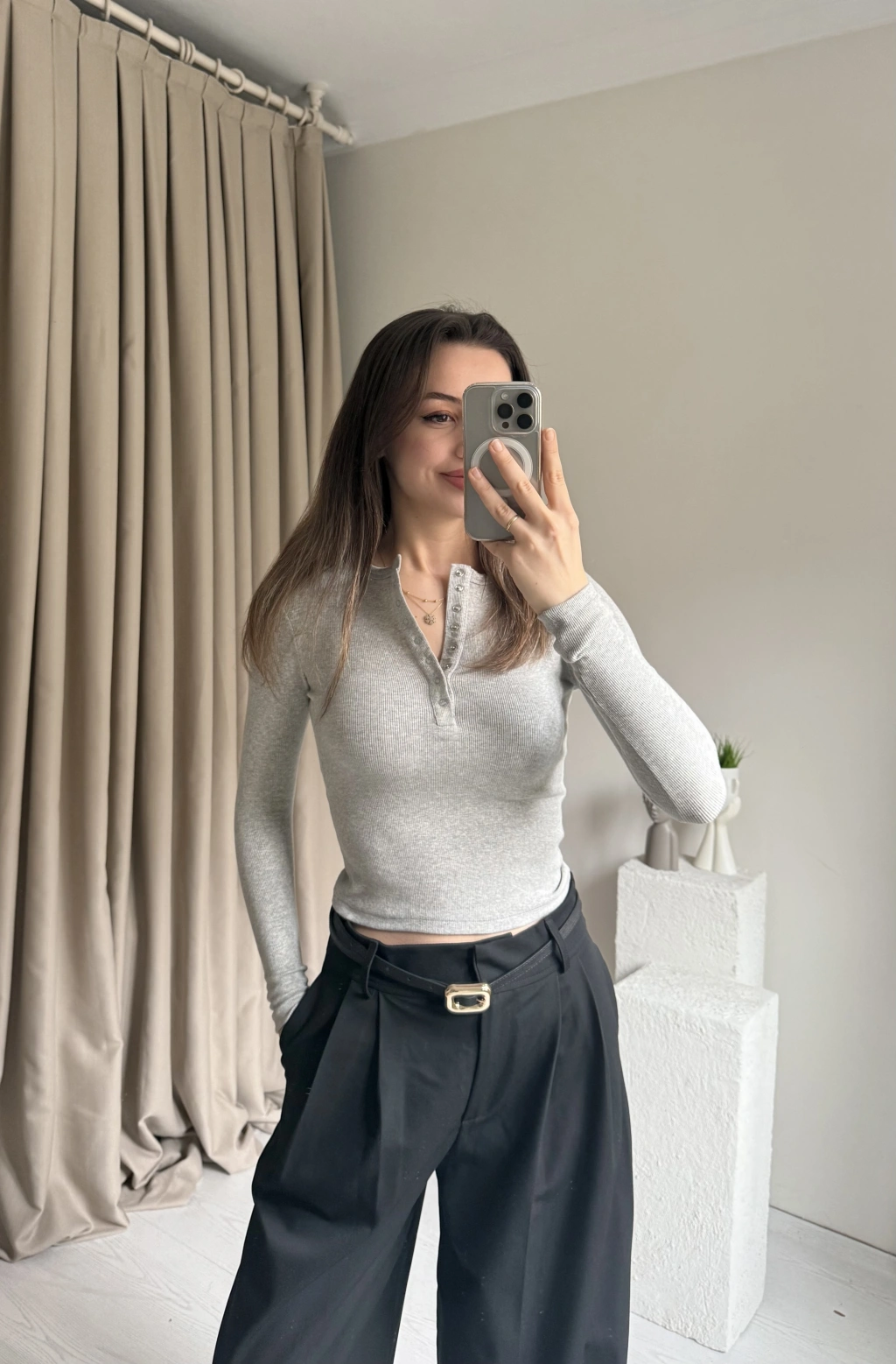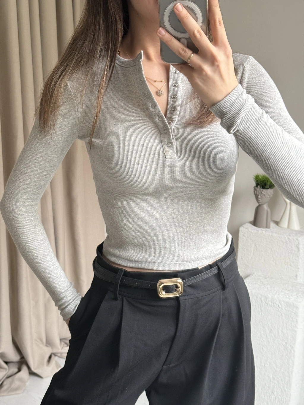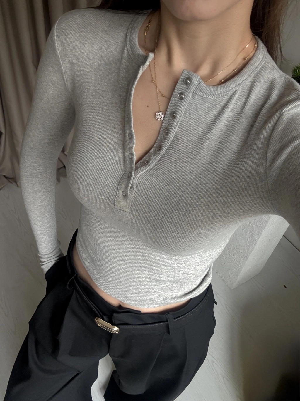 Gri Çıtçıtlı Kaşkorse Bluz