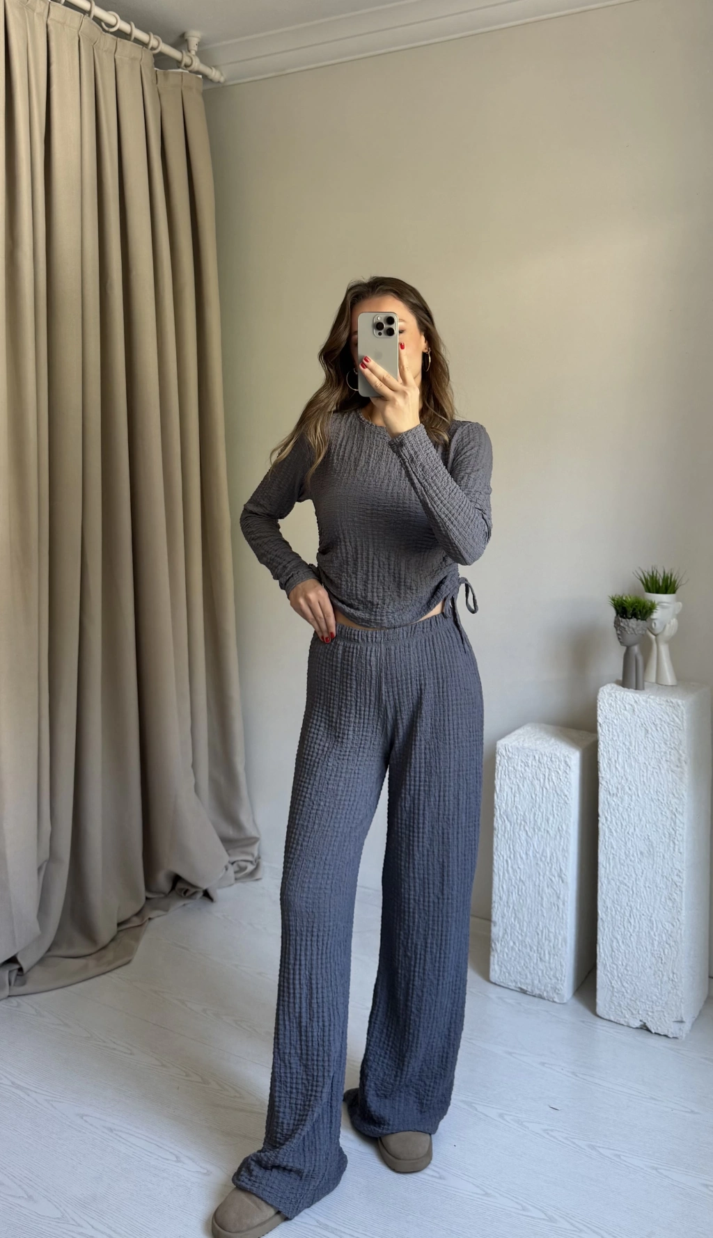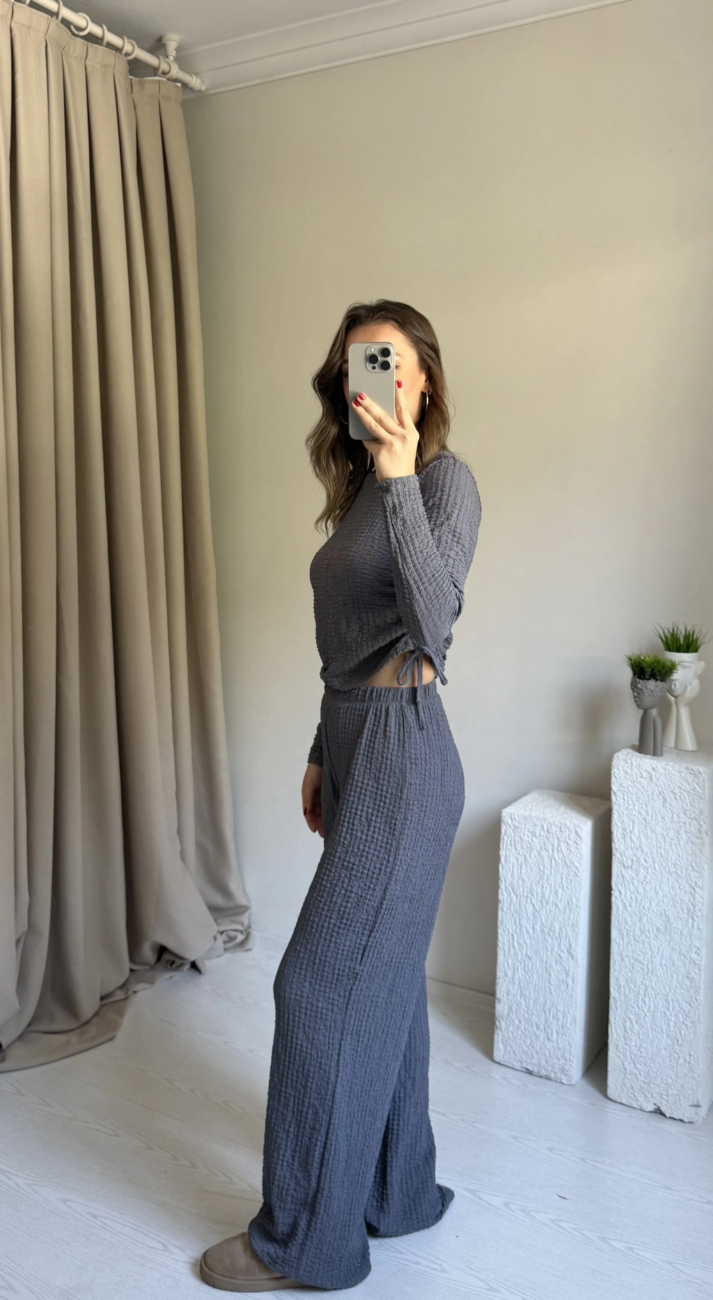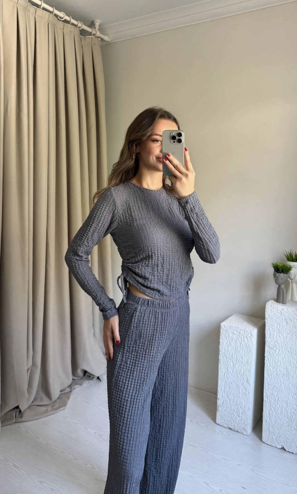Antrasit Üçlü Konfor Seti (bluz+hırka+eşofman)