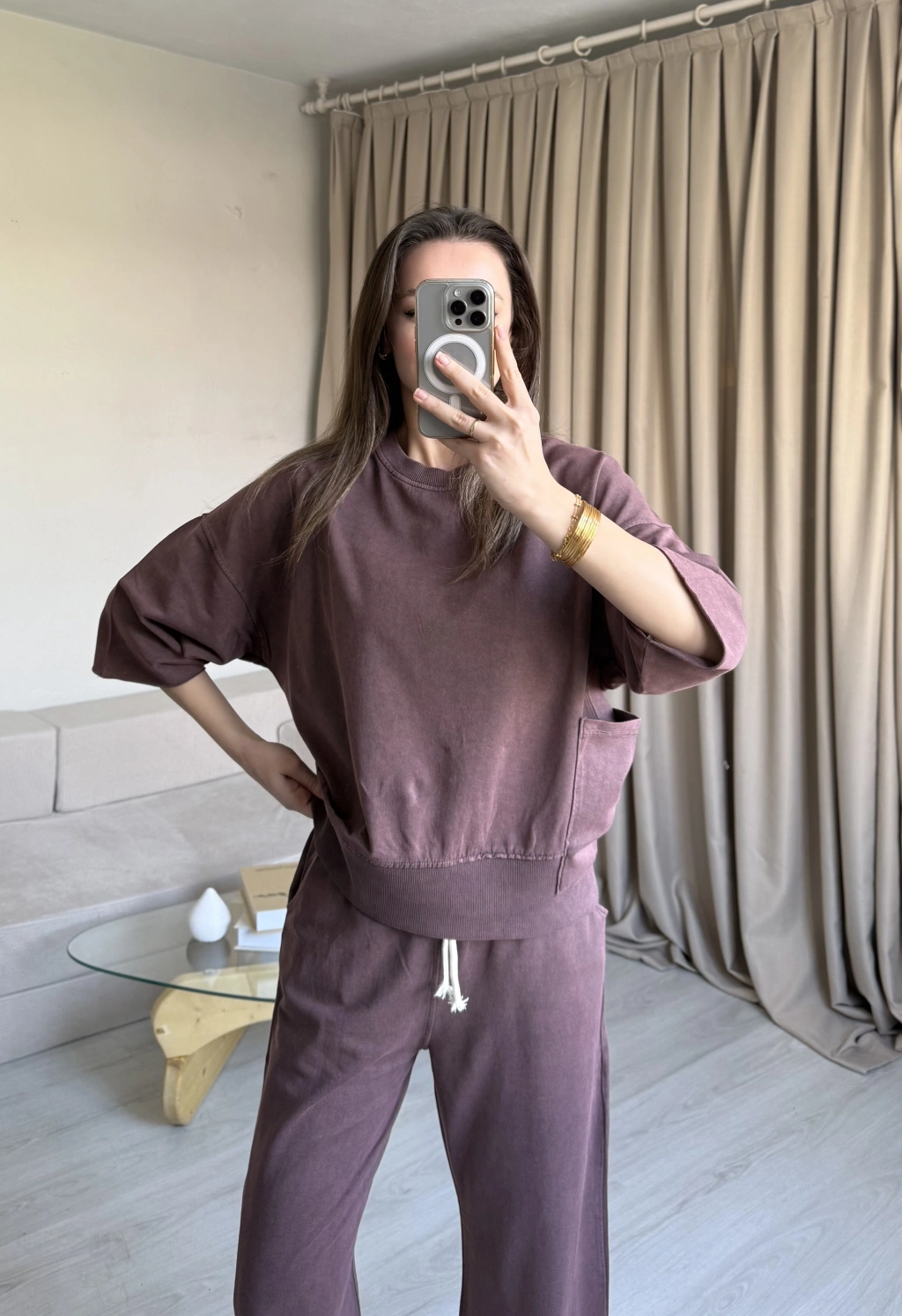 Gül Kurusu Eskitme Eşofman Takımı