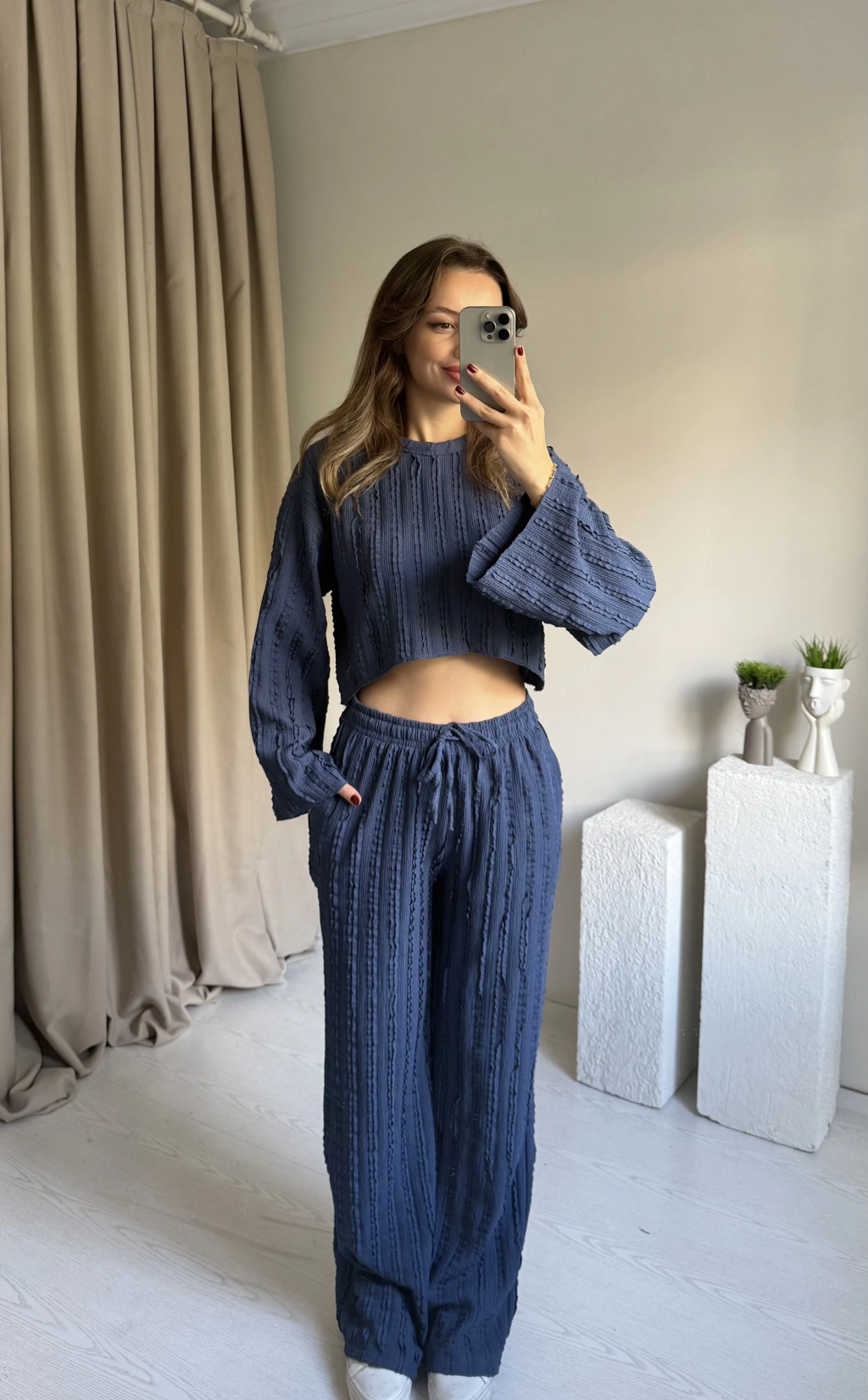 Antrasit Üçlü Konfor Seti (bluz+hırka+eşofman)