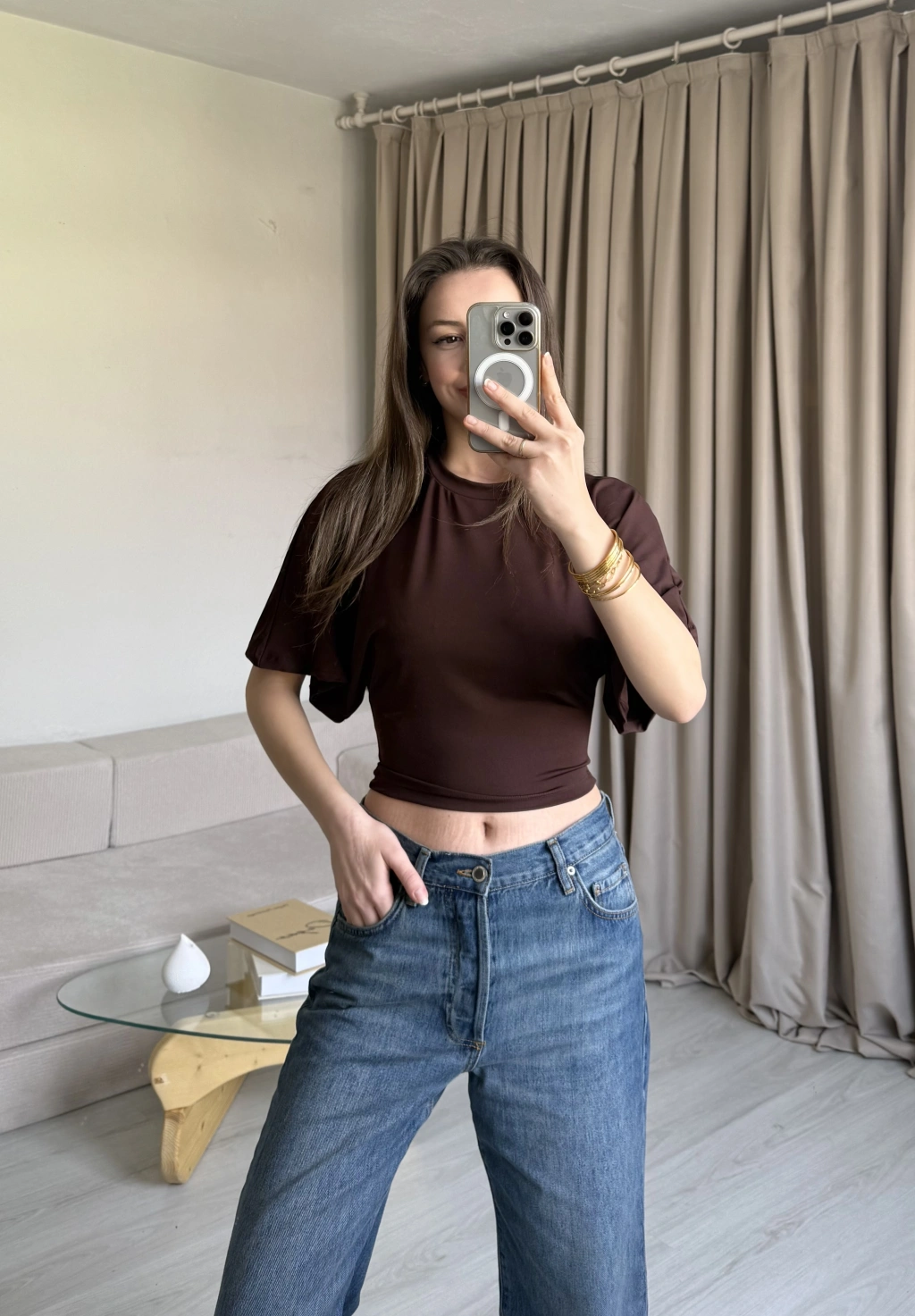 Kahve Belden Oturtmalı Yarasa Kol Bluz