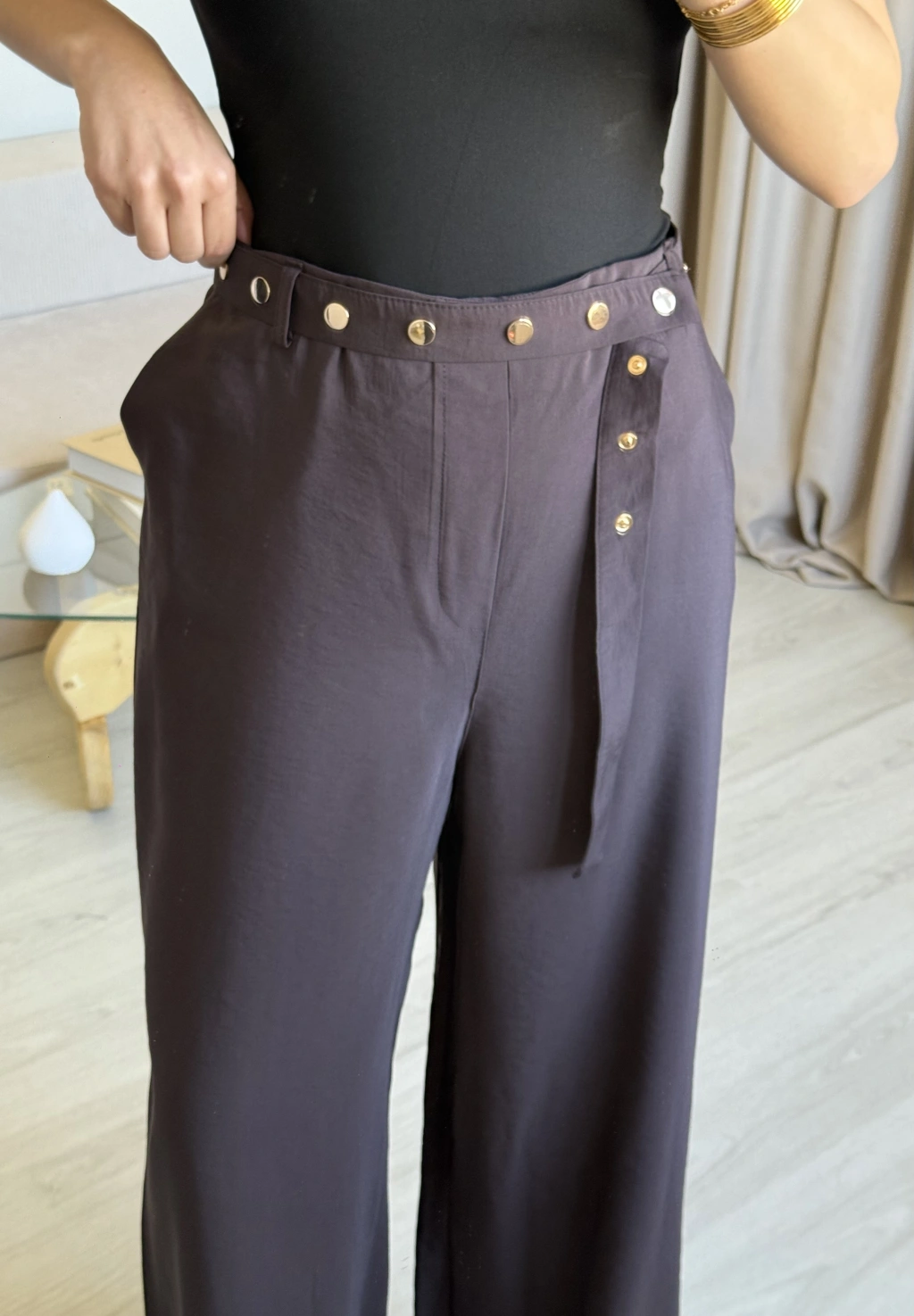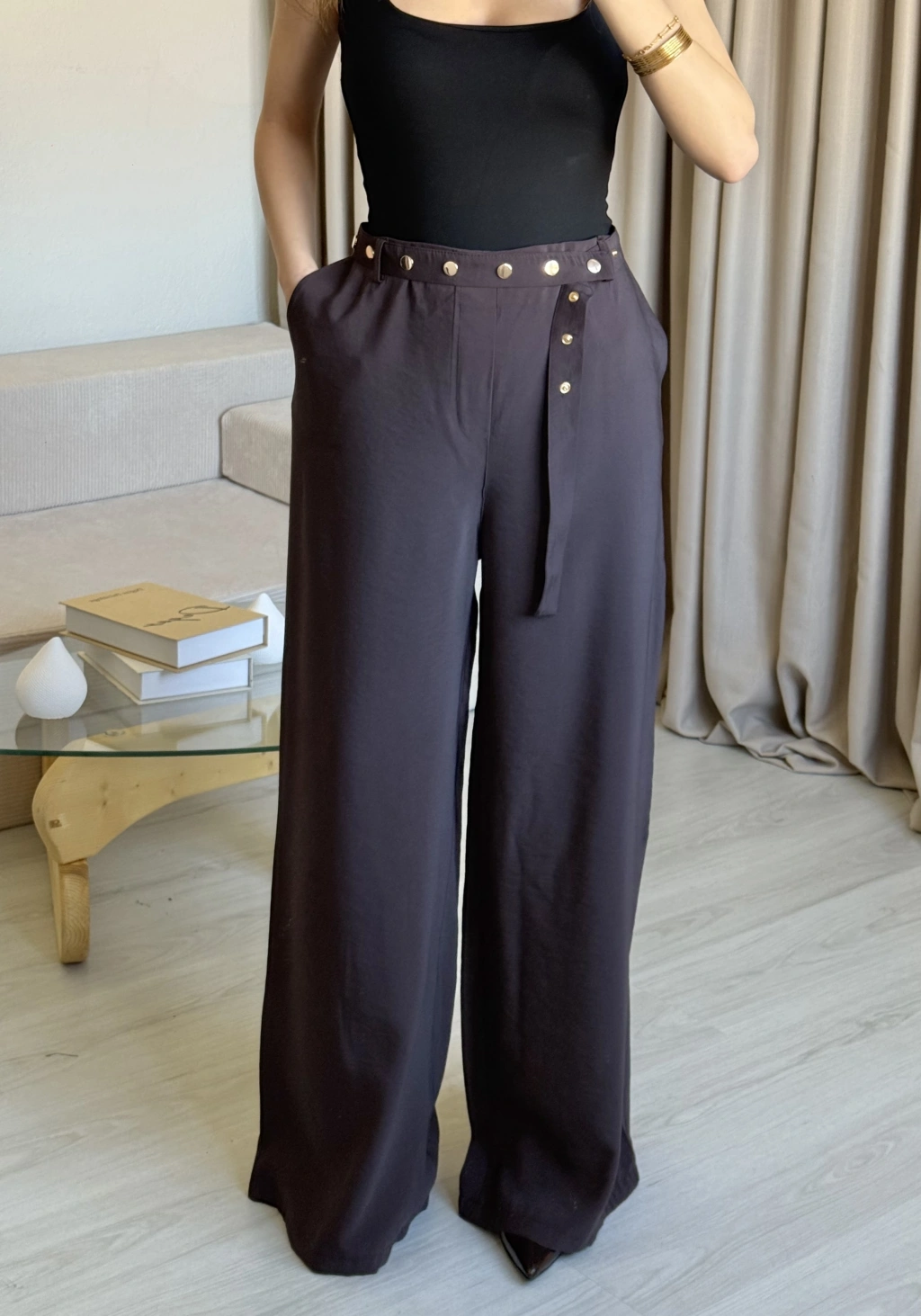 Kahve Çıtçıt Kemerli Palazzo Pantolon
