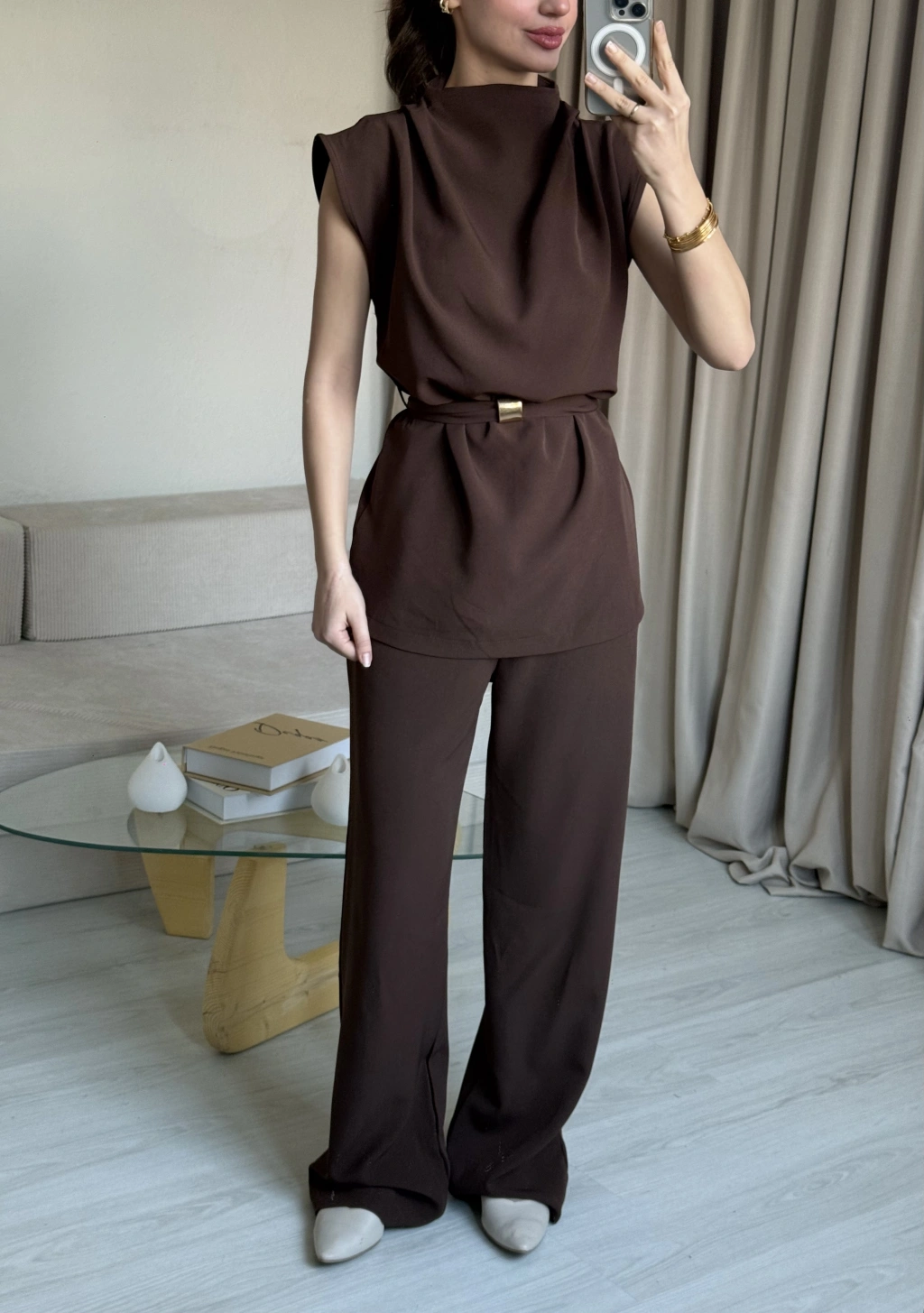 Kahve Kolsuz Gold Detaylı Takım