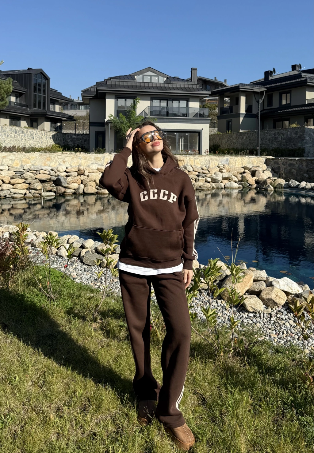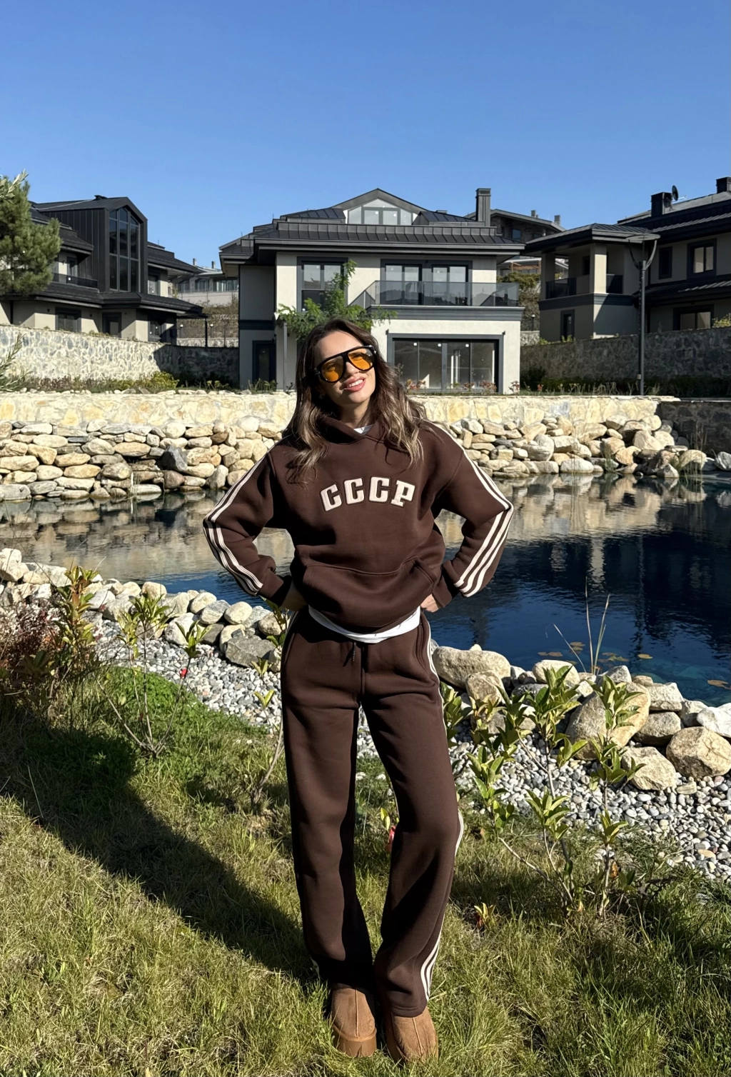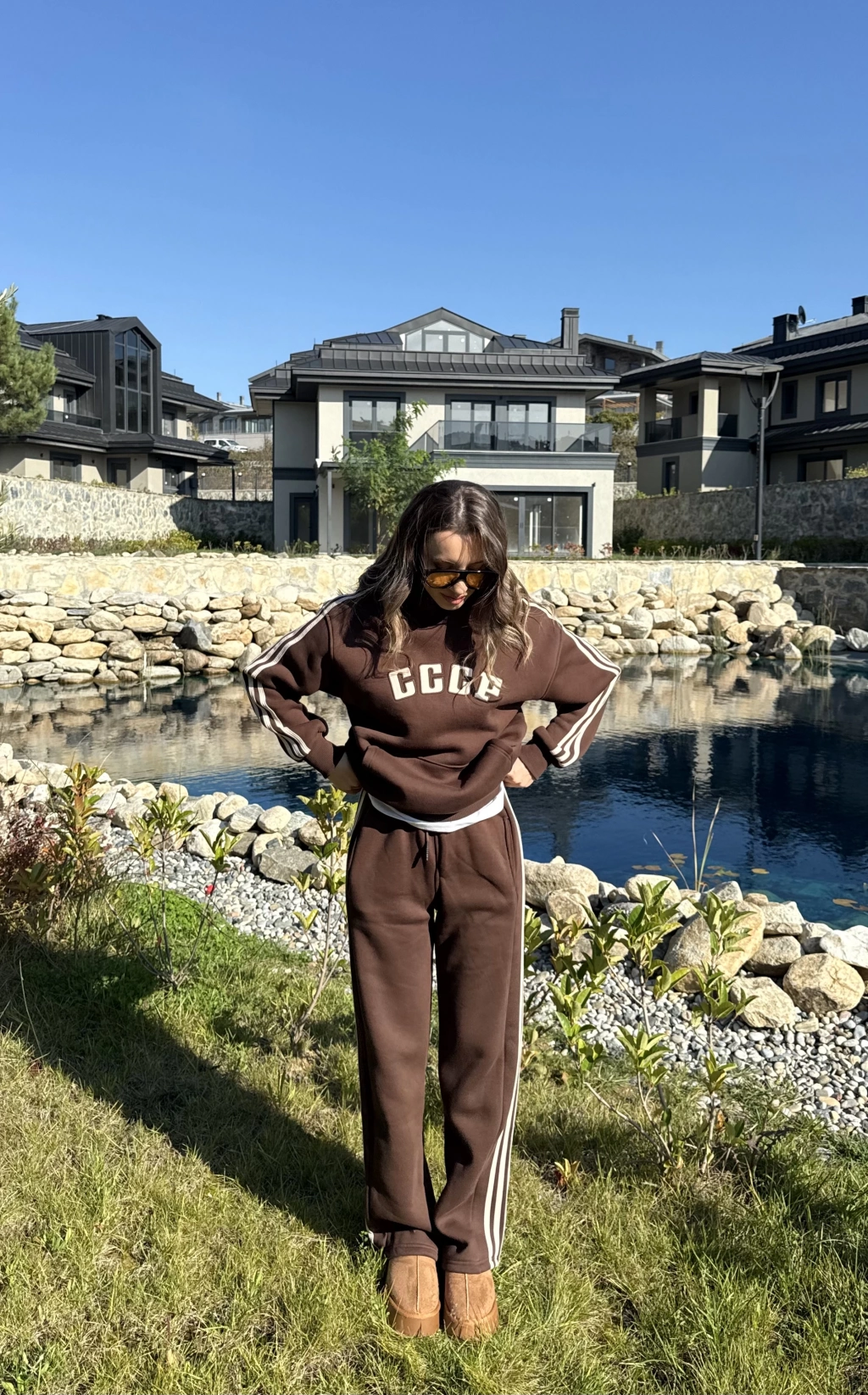 Kahverengi 3 İplik Şardonlu Çizgili Takım