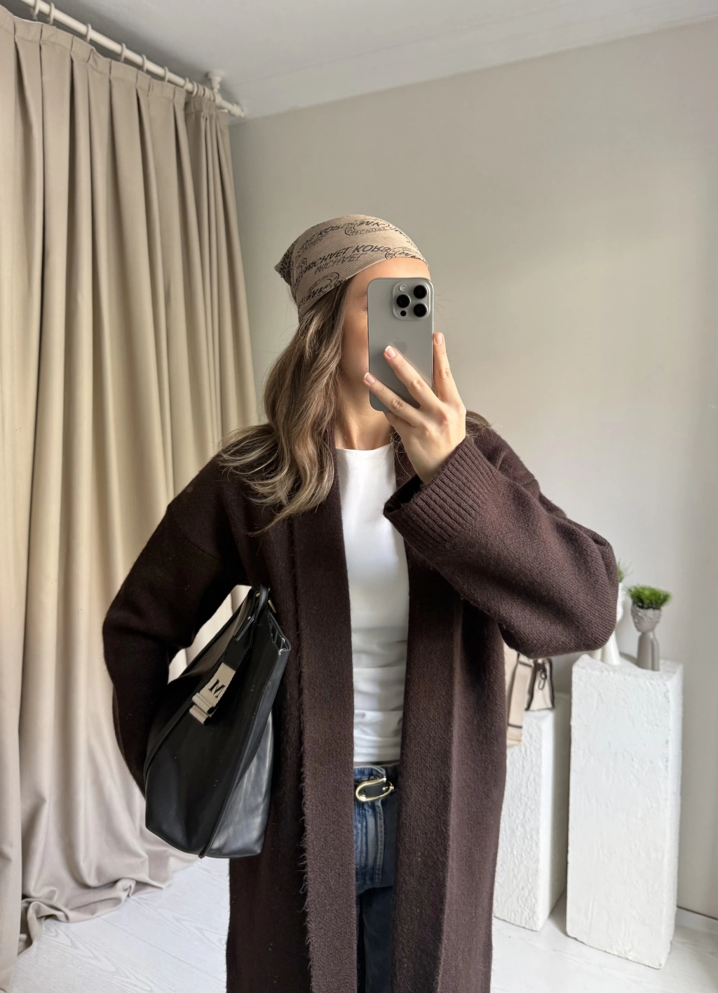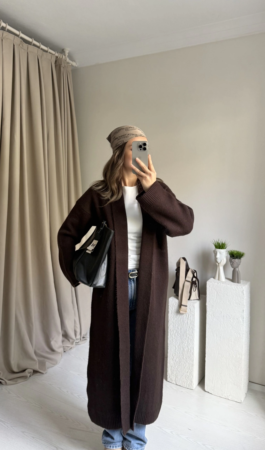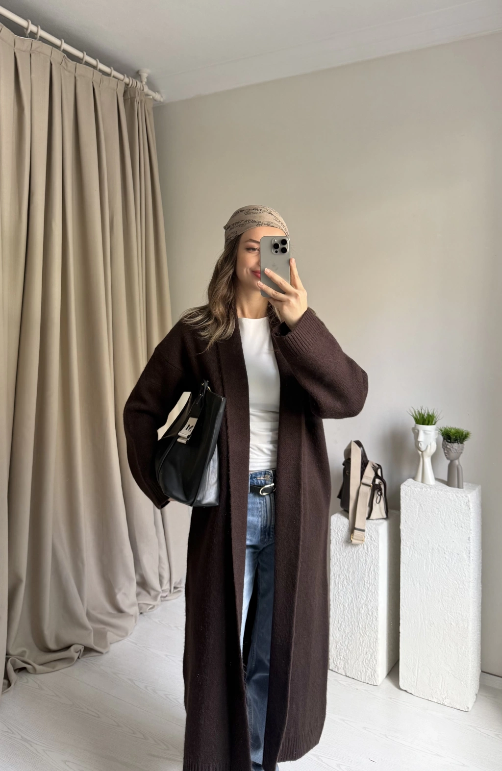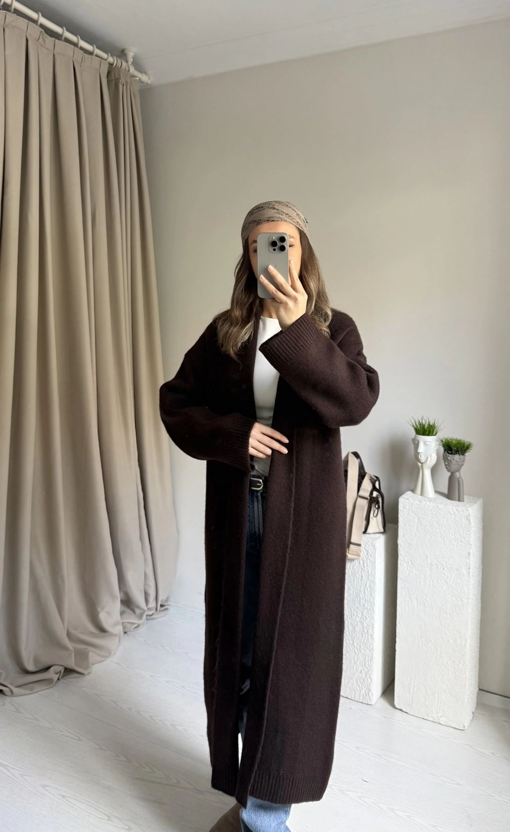 Kahverengi Premıum Uzun Triko Hırka