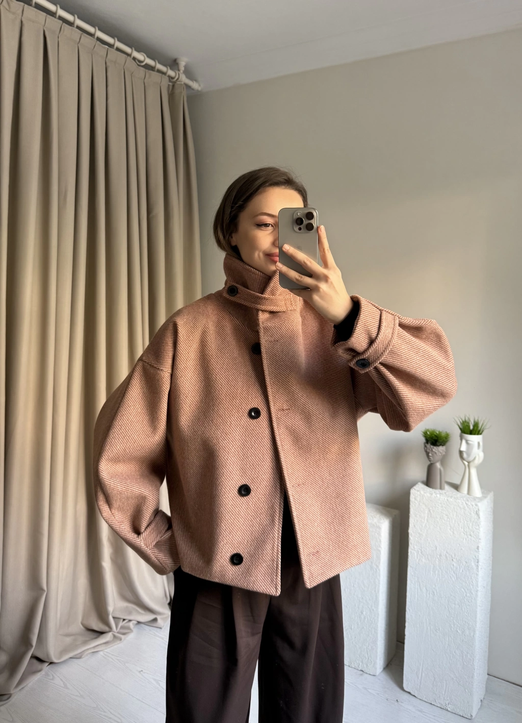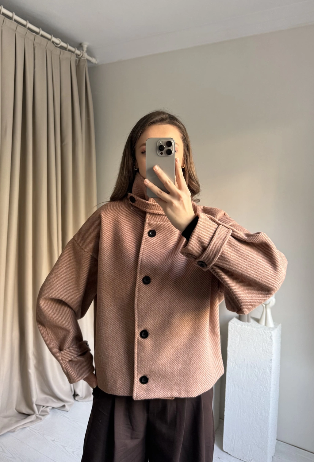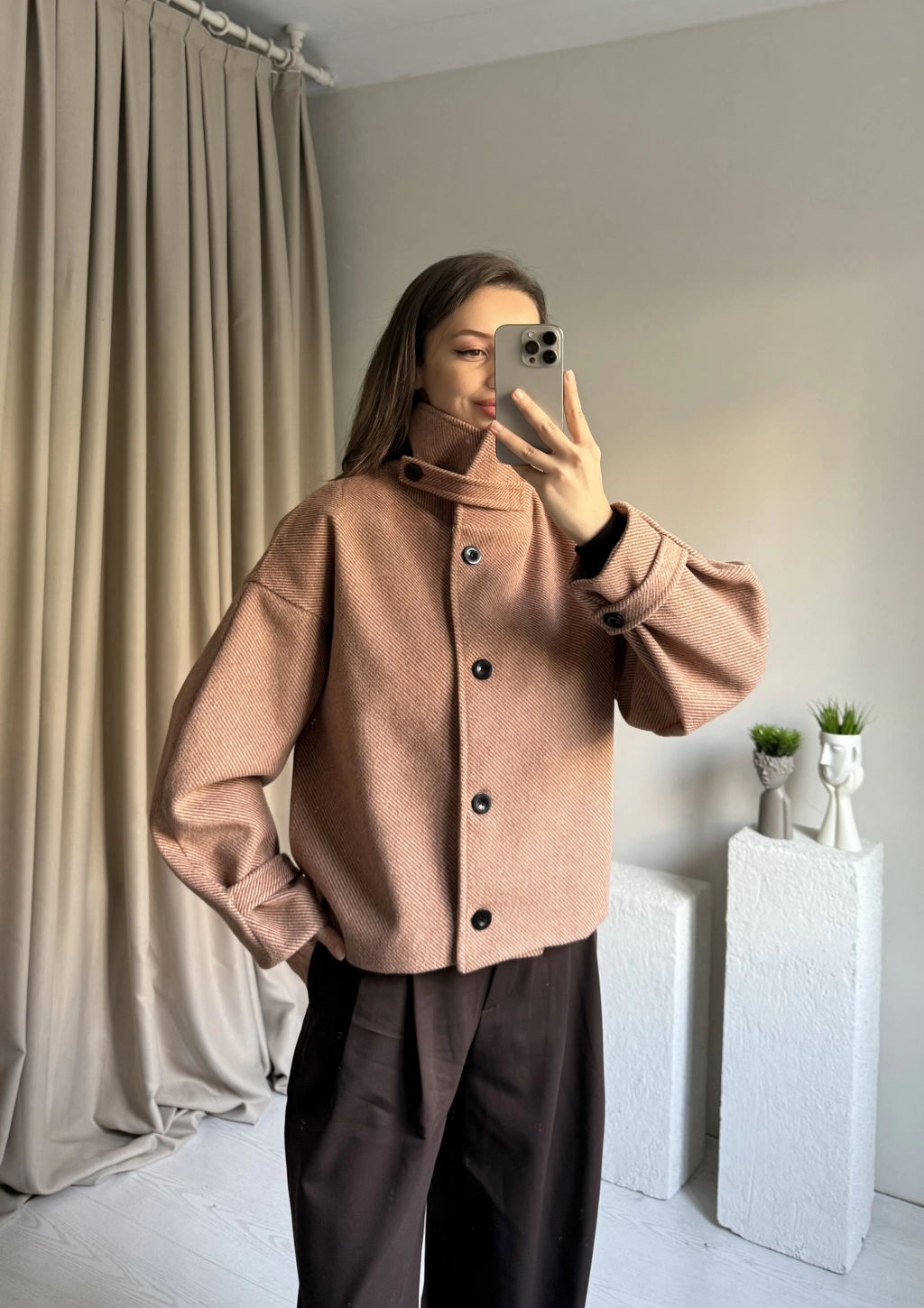 Kiremit Kaşe Düğmeli Çizgili Ceket