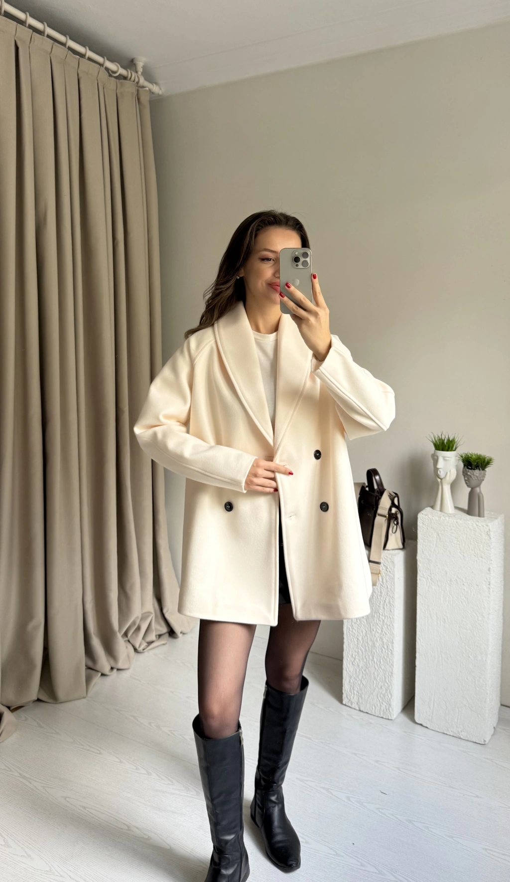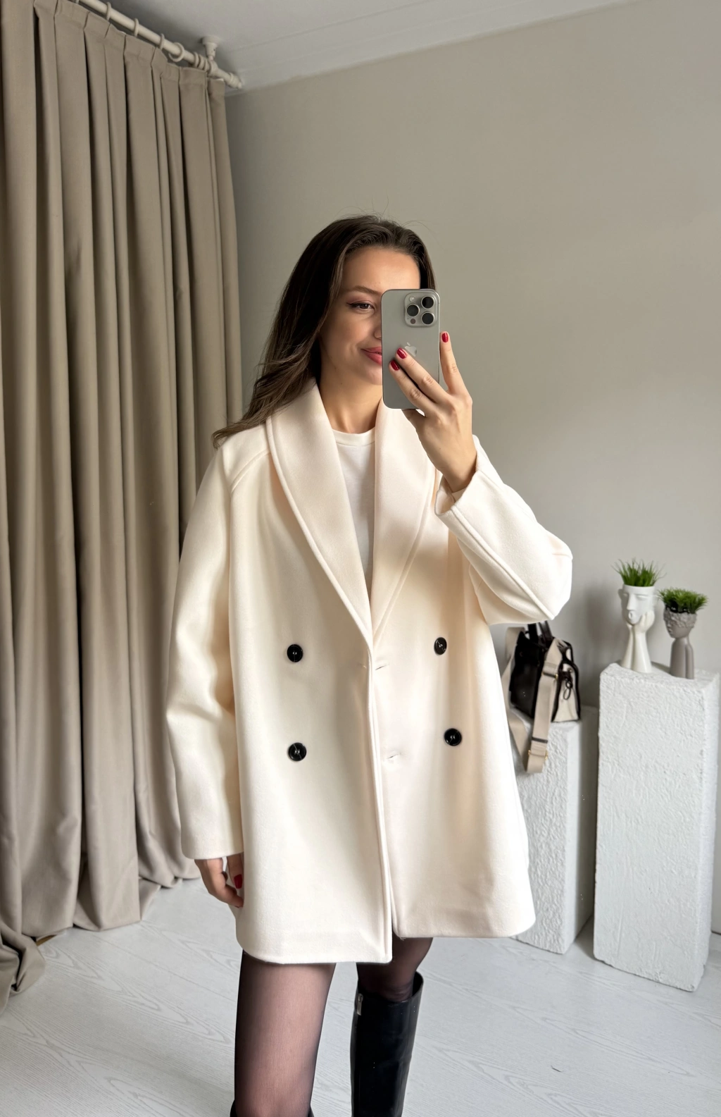 Krem Çift Düğmeli Kaşe Premıum Ceket