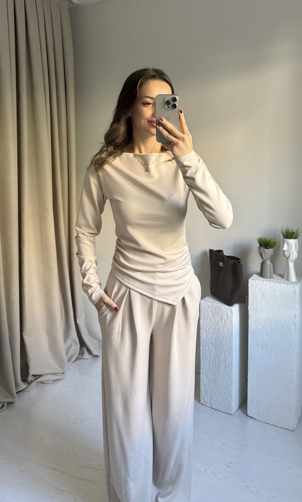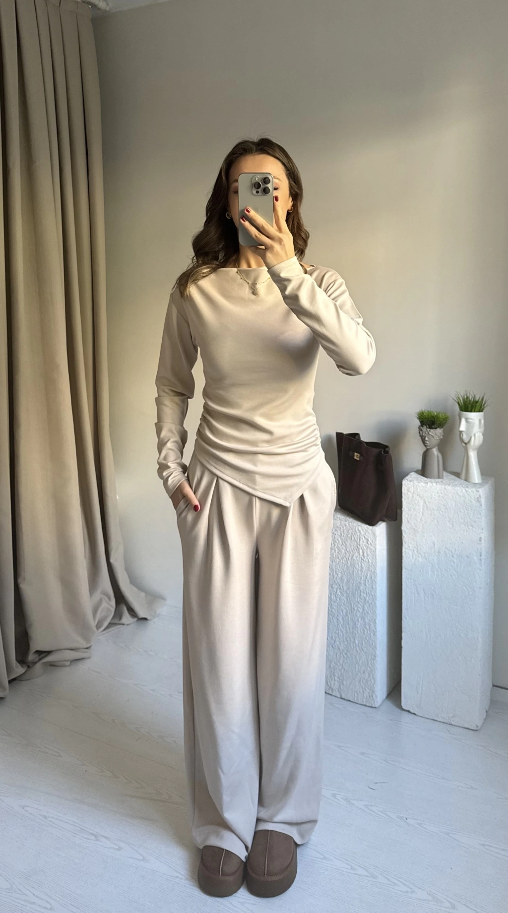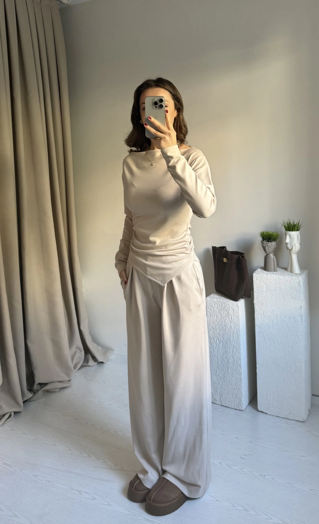 Beyaz Üçlü Konfor Seti (bluz+hırka+eşofman)