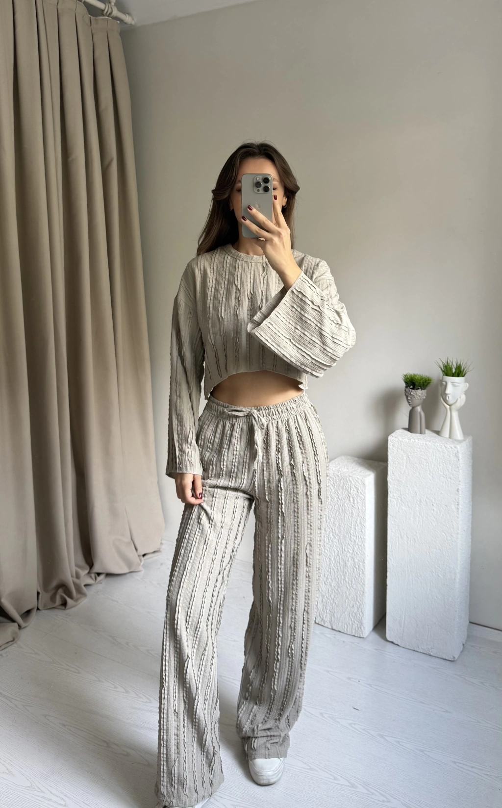 Antrasit Üçlü Konfor Seti (bluz+hırka+eşofman)