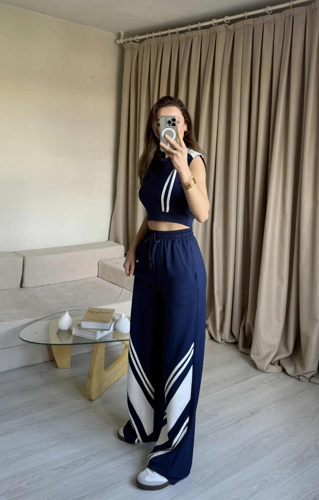 Lacivert Crop Sıfır Kol Eşofman Takım