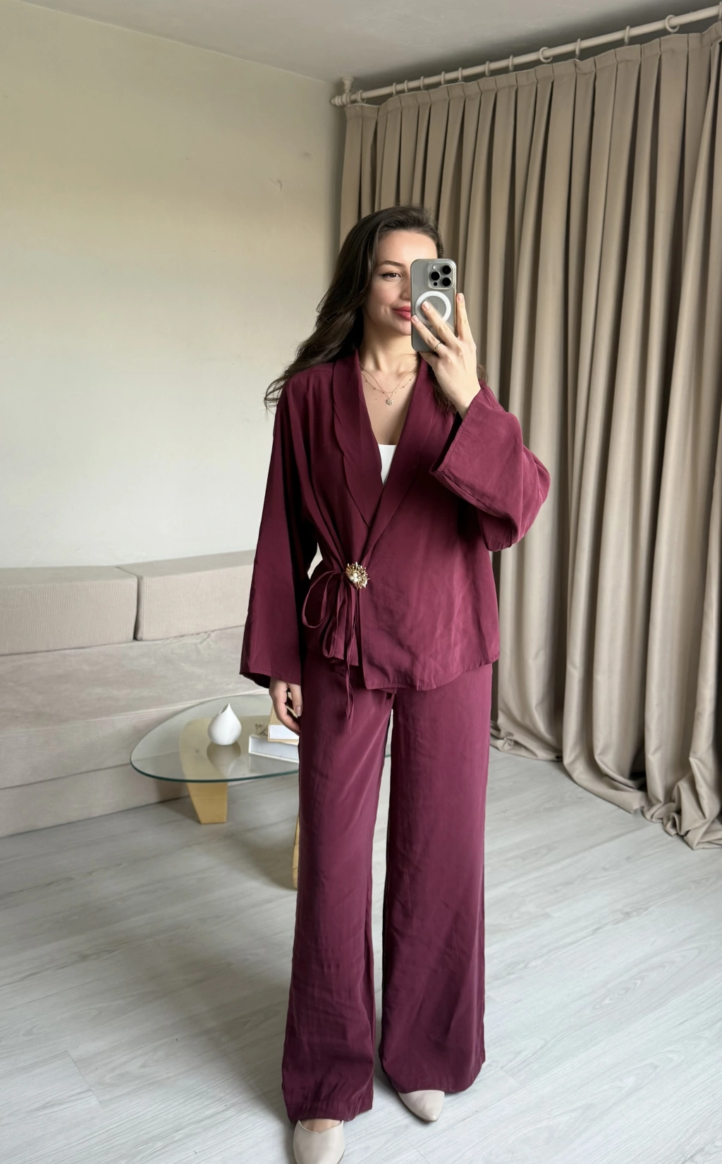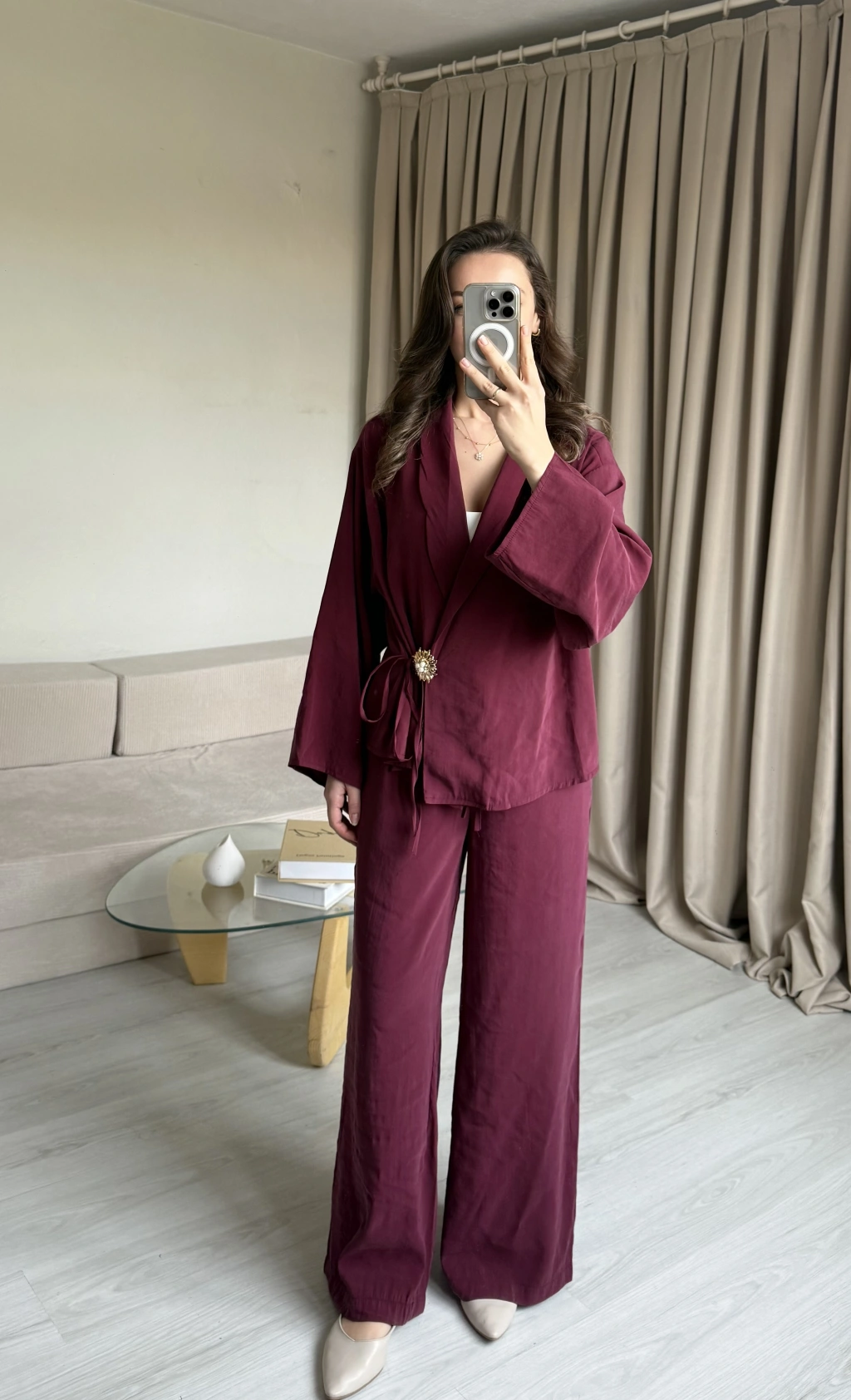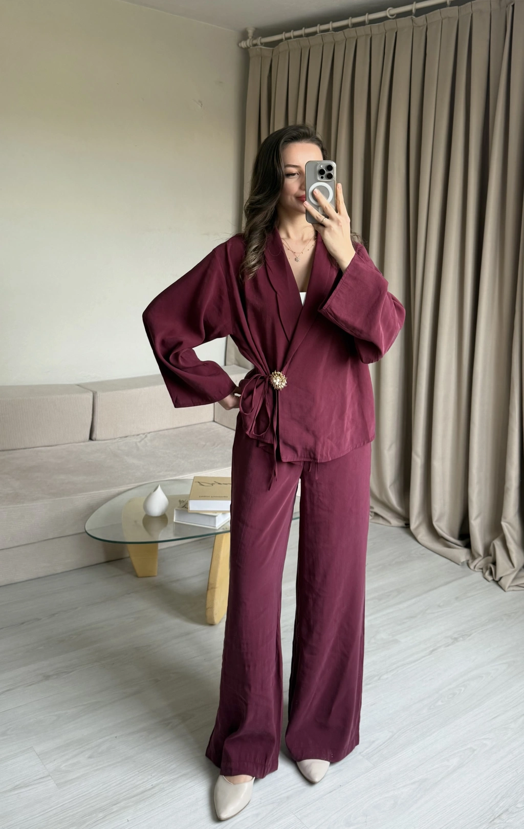 Mürdüm Broşlu Pantolon Takımm