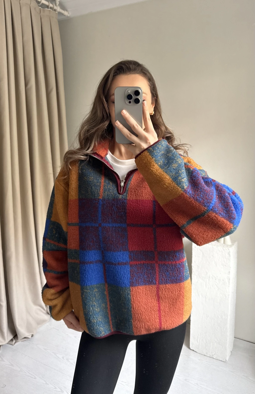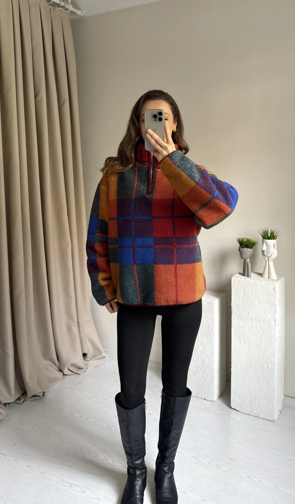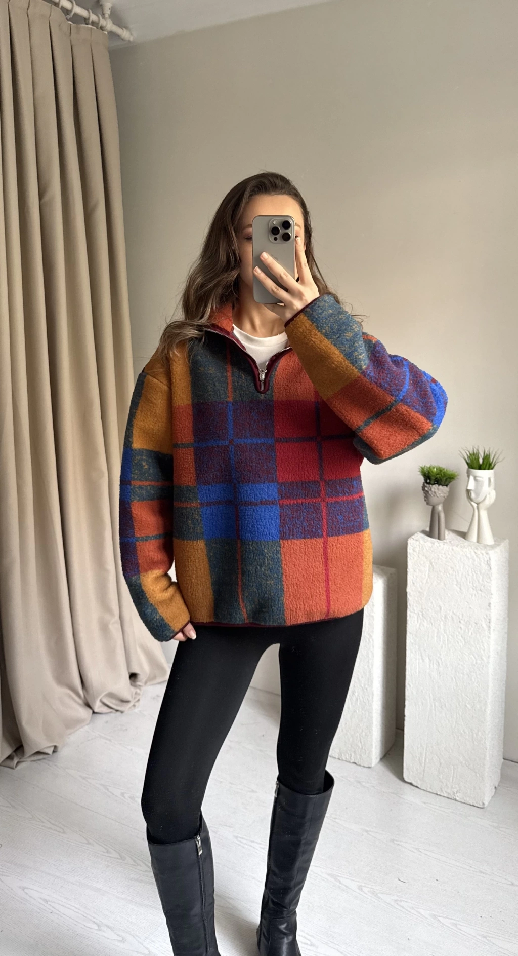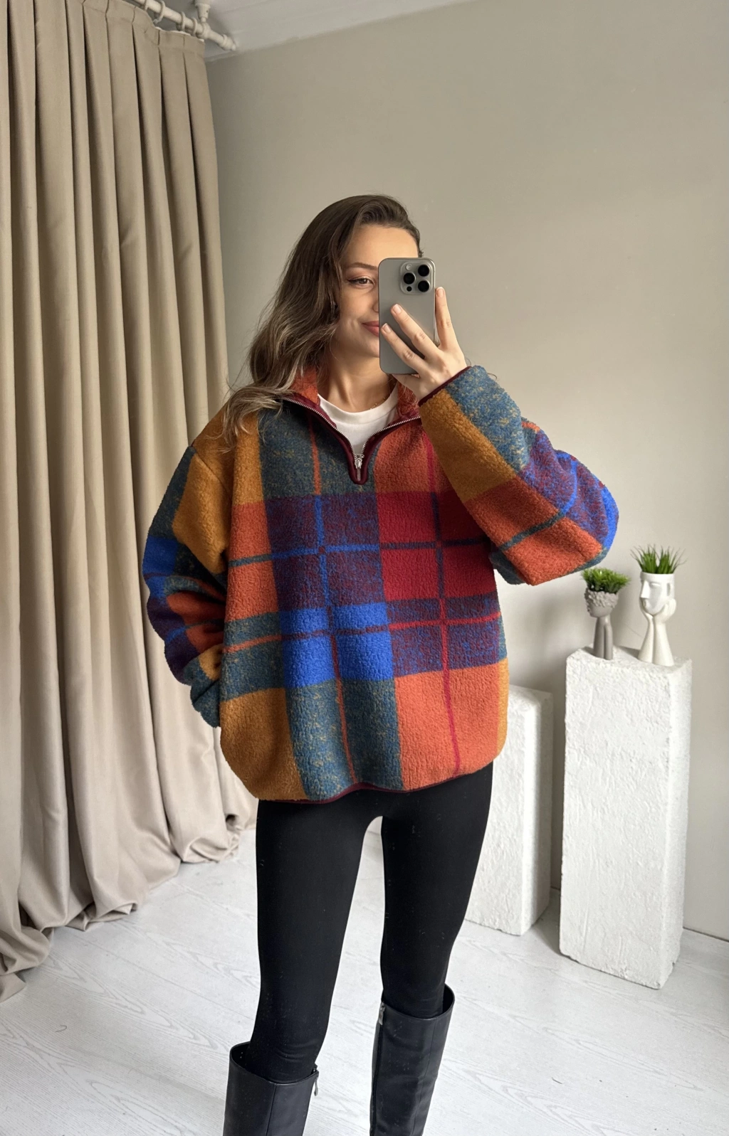 Kiremit Kaşe Düğmeli Çizgili Ceket