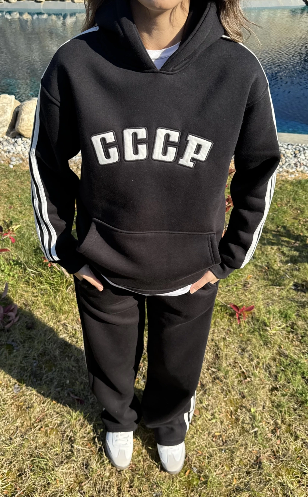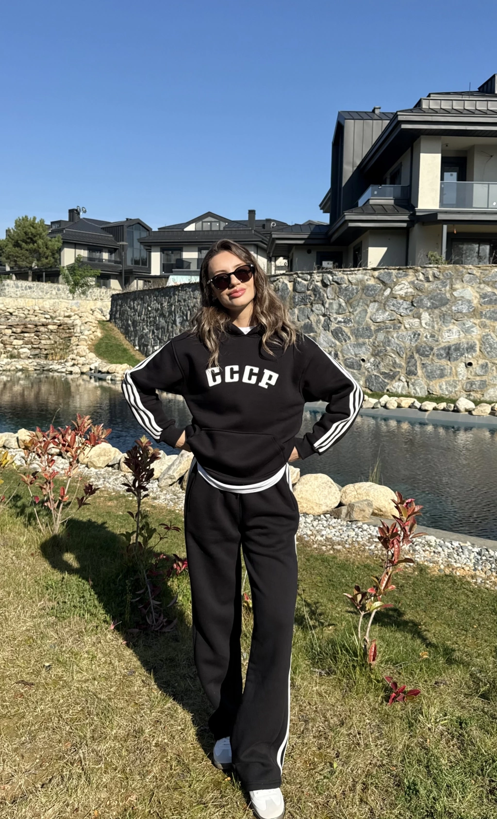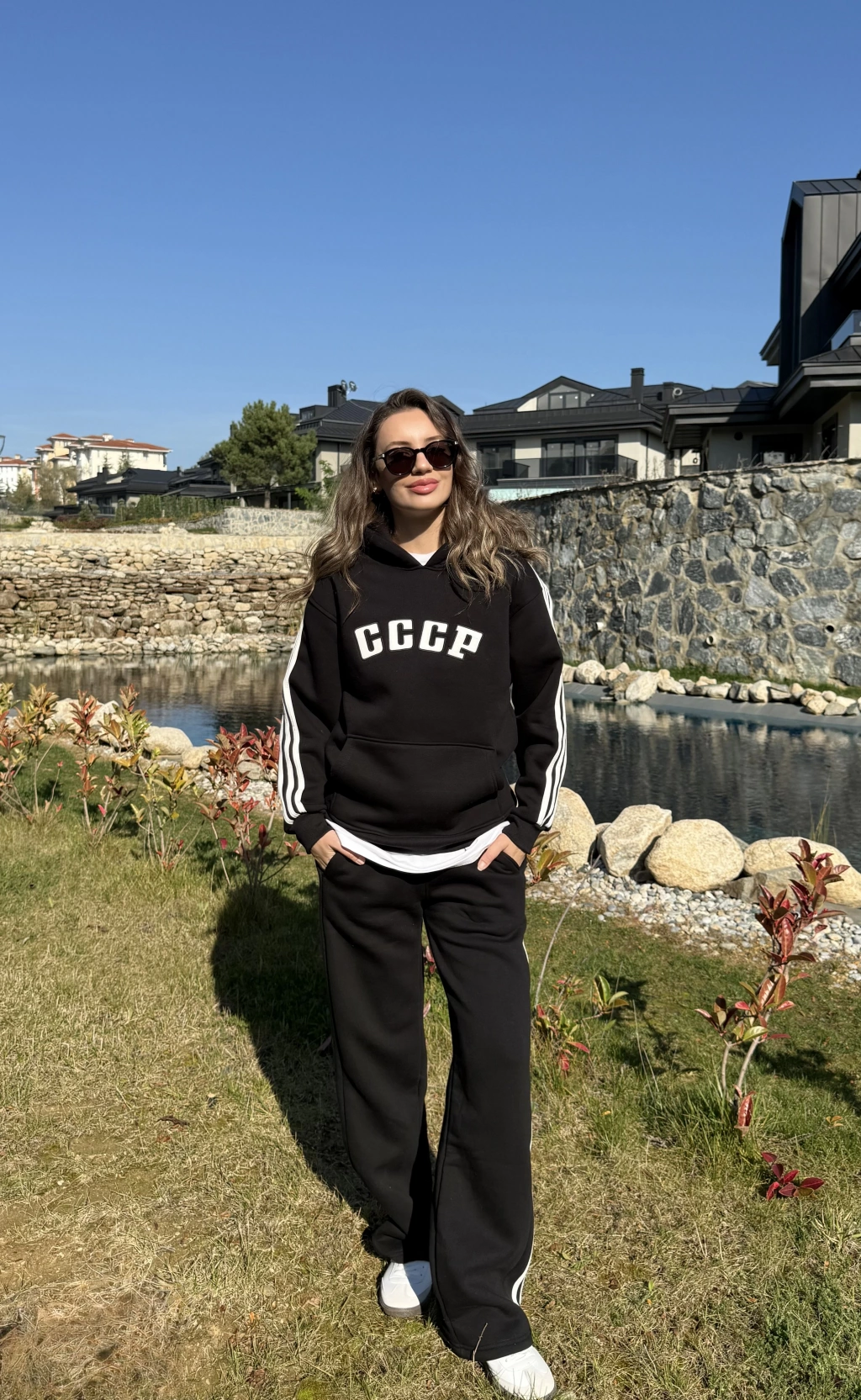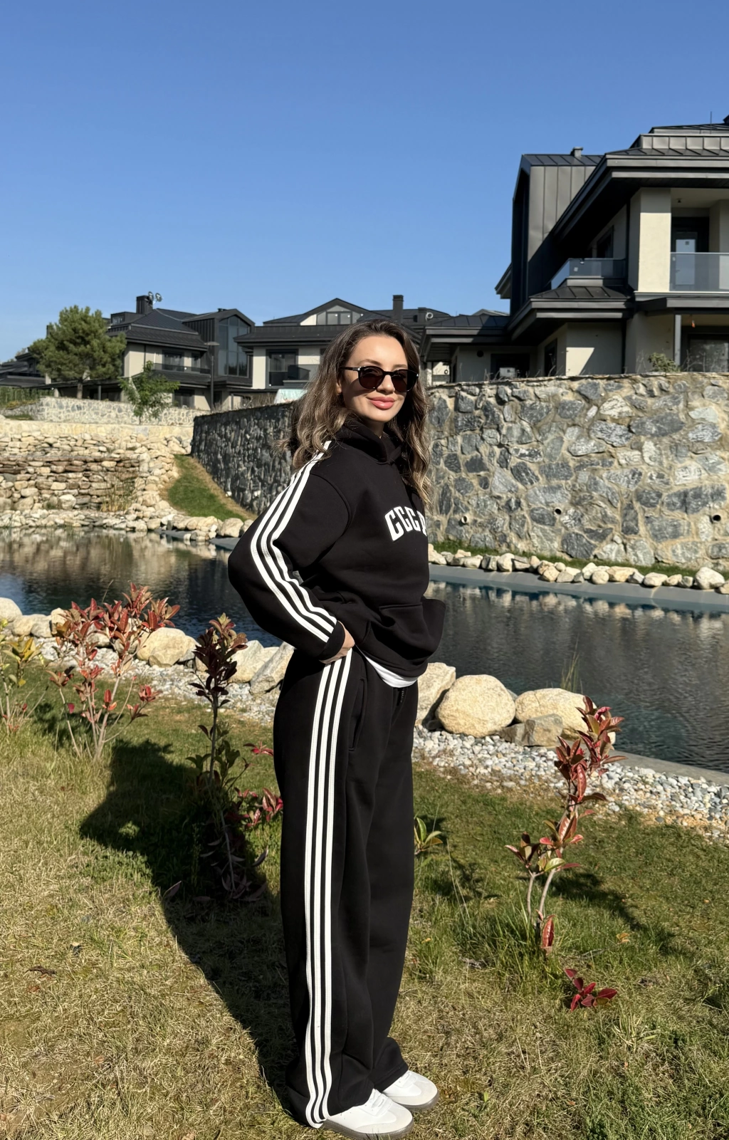 Siyah 3 İplik Şardonlu Çizgili Takım