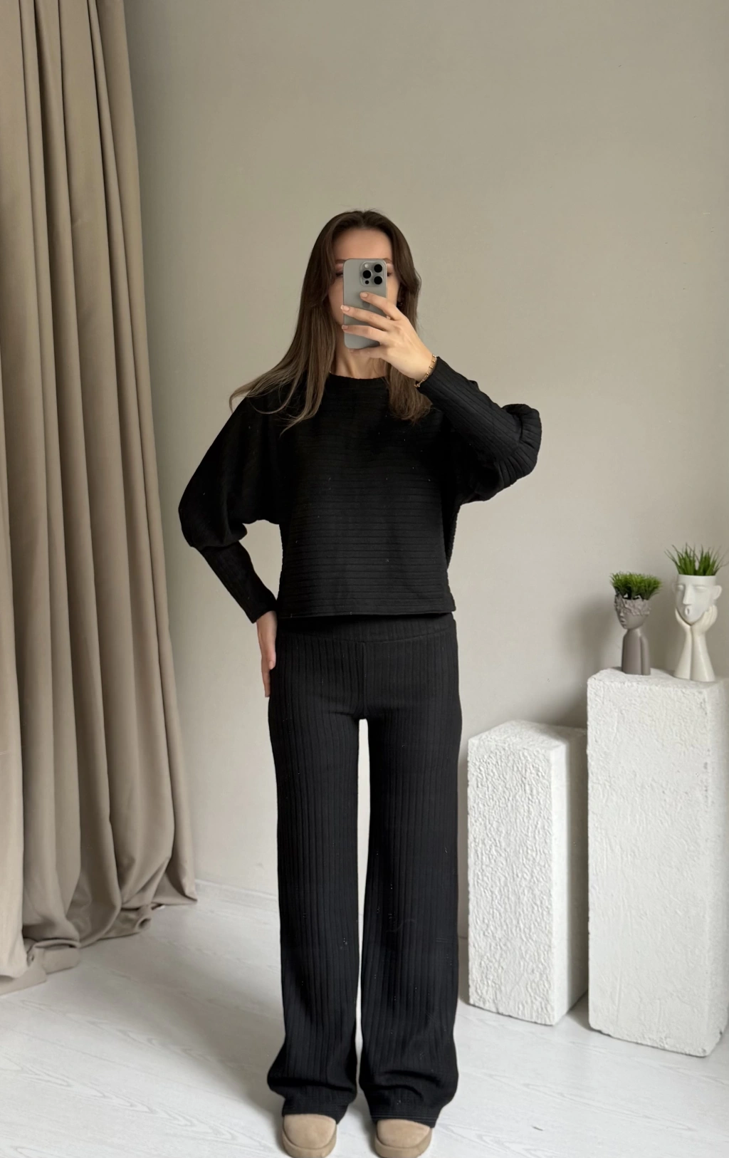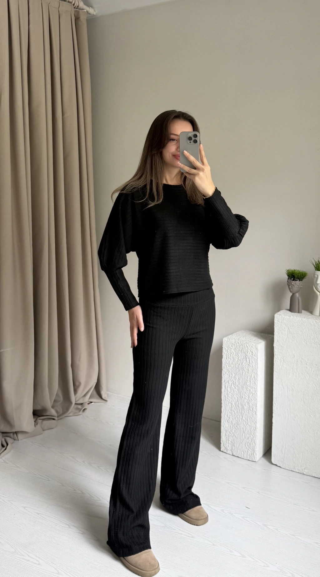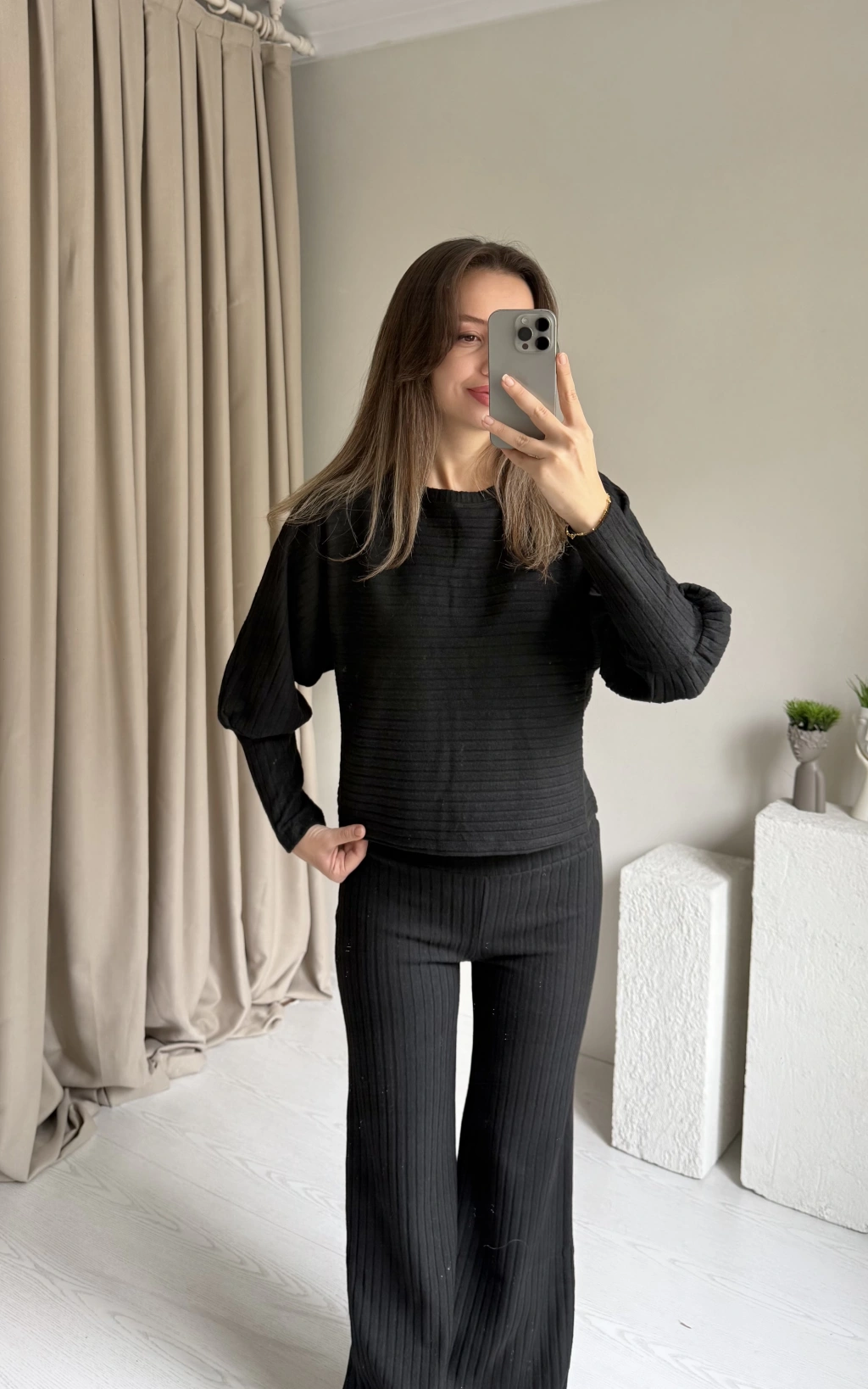 Siyah Üçlü Konfor Seti (bluz+hırka+eşofman)