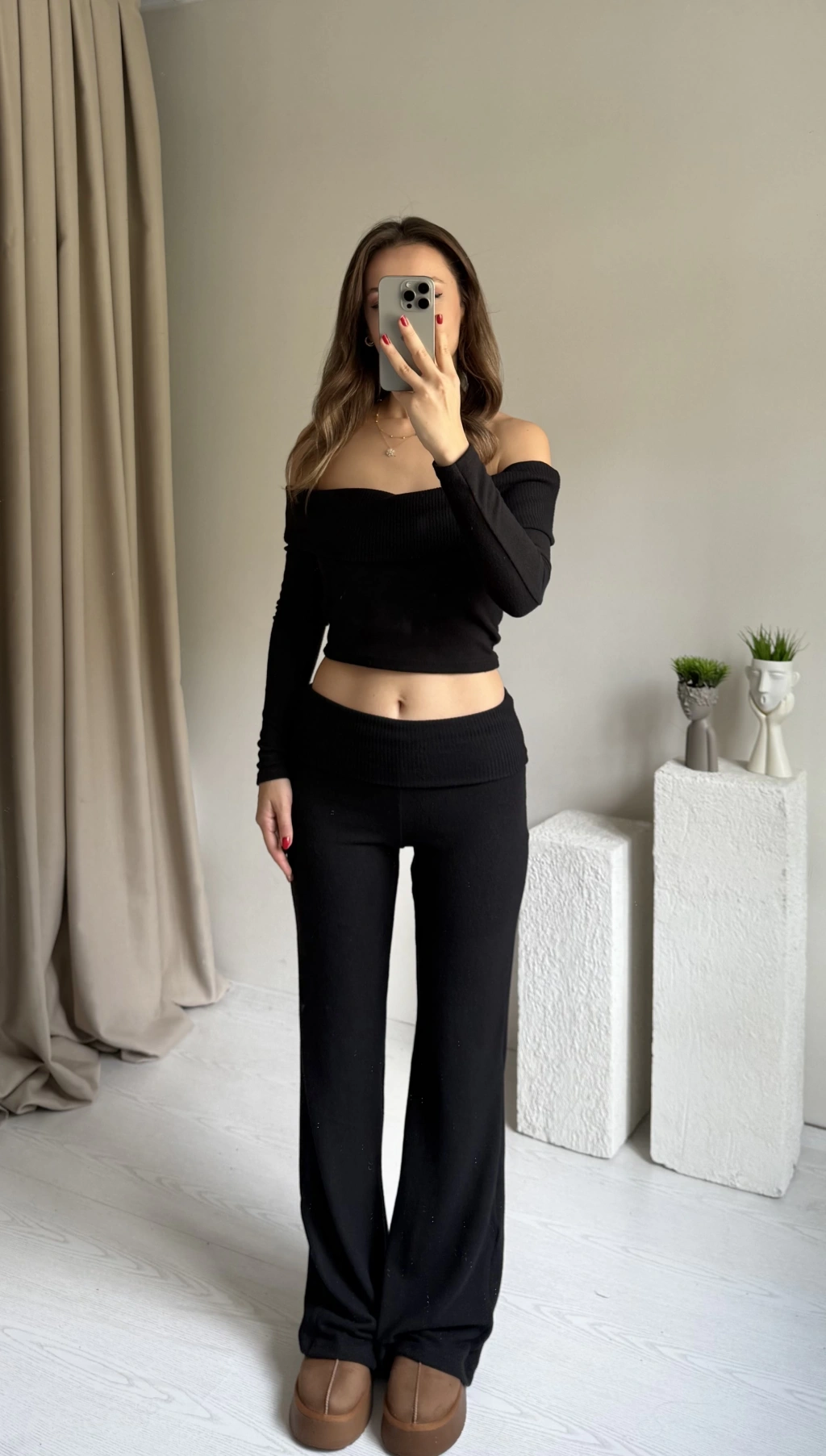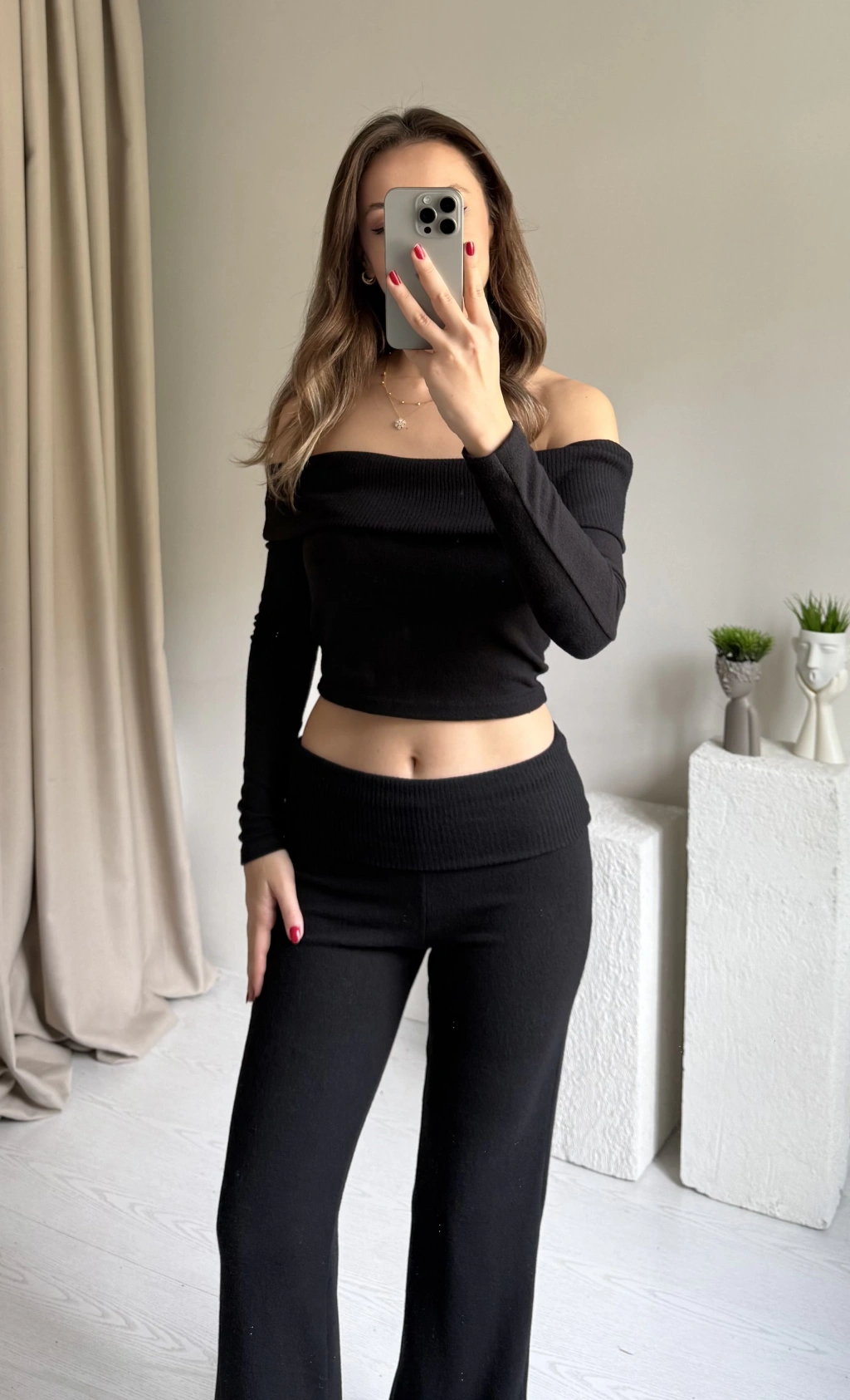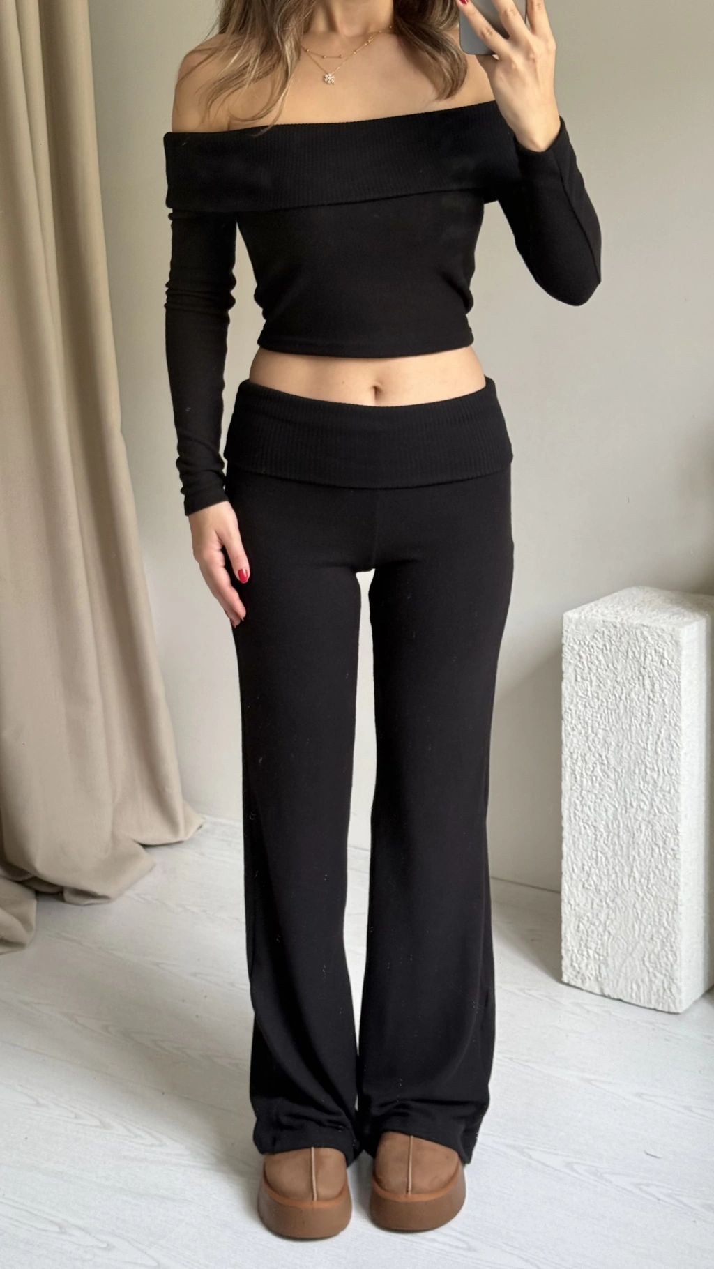 Siyah Üçlü Konfor Seti (bluz+hırka+eşofman)