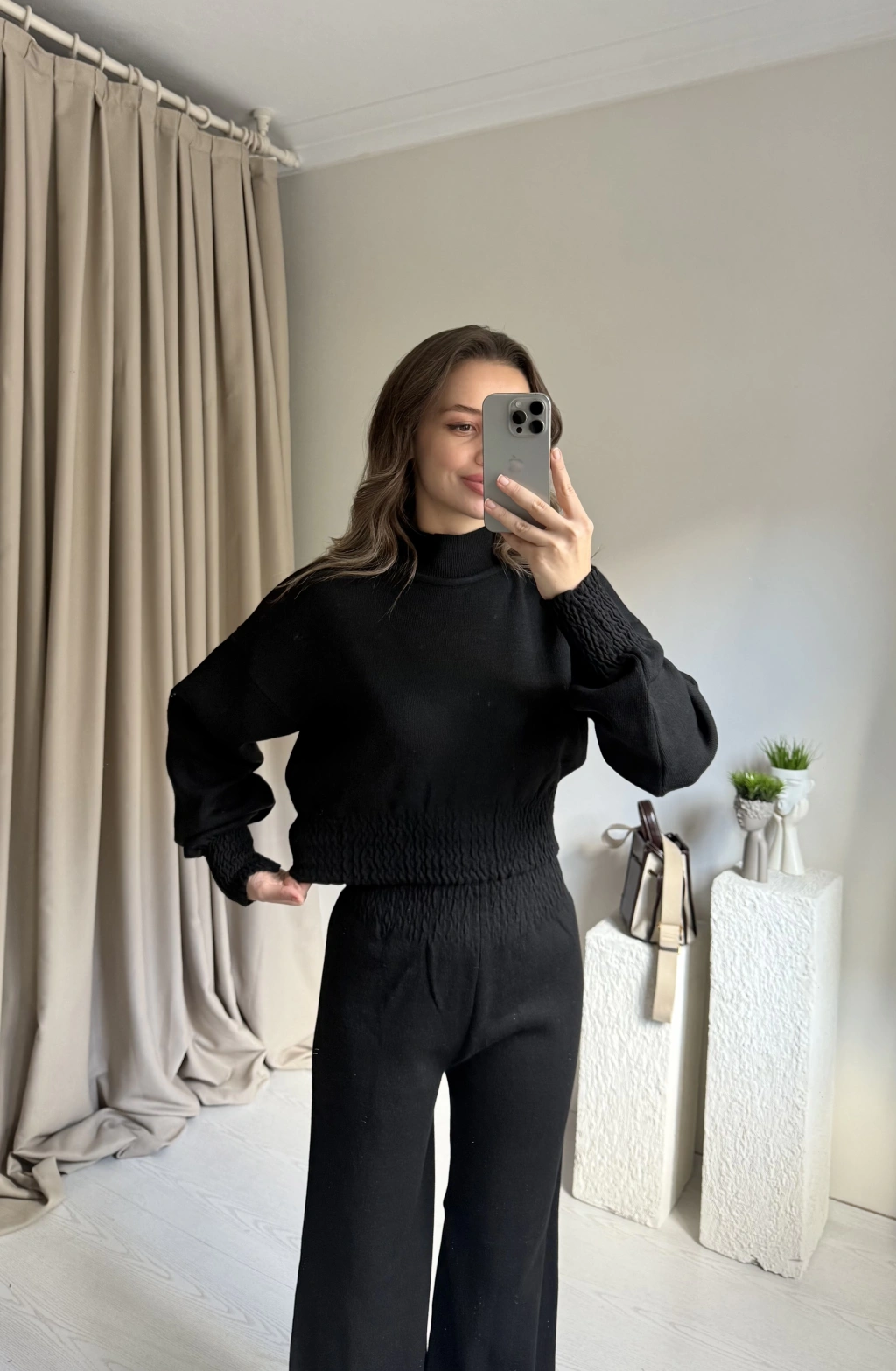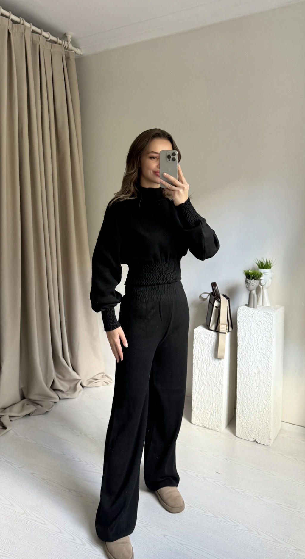 Siyah Üçlü Konfor Seti (bluz+hırka+eşofman)