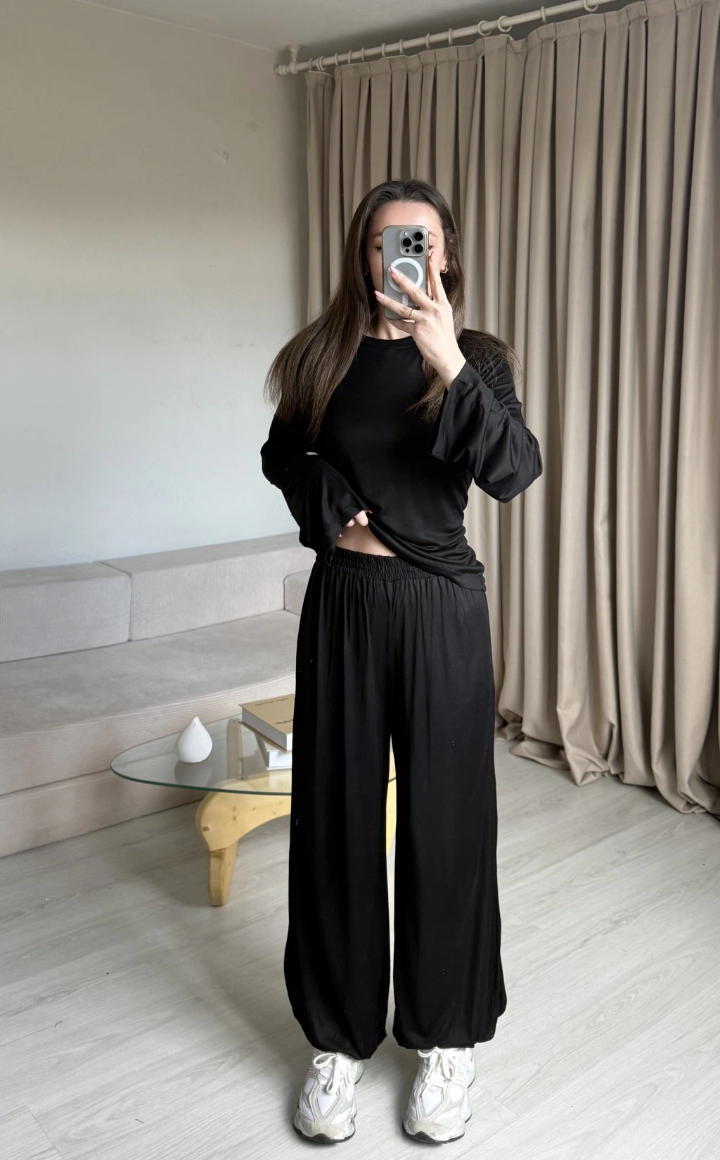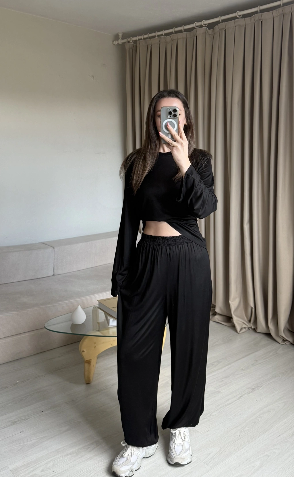 Siyah Belden Bağlamalı Eşofman Takımı