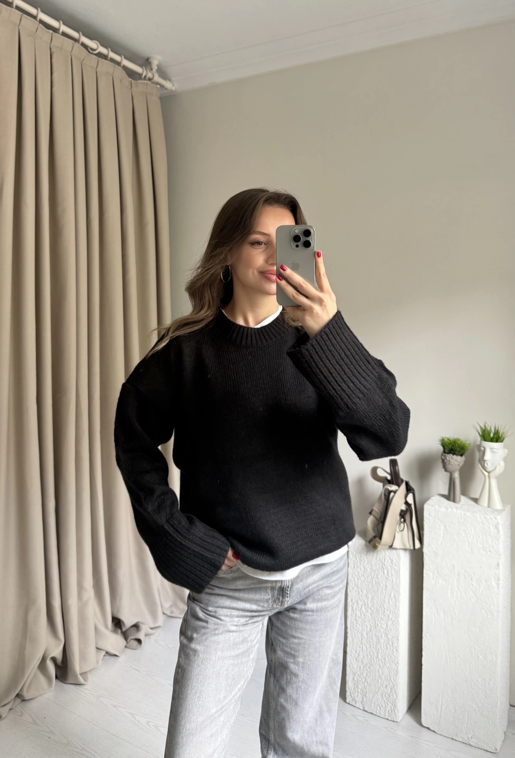Siyah Üçlü Konfor Seti (bluz+hırka+eşofman)