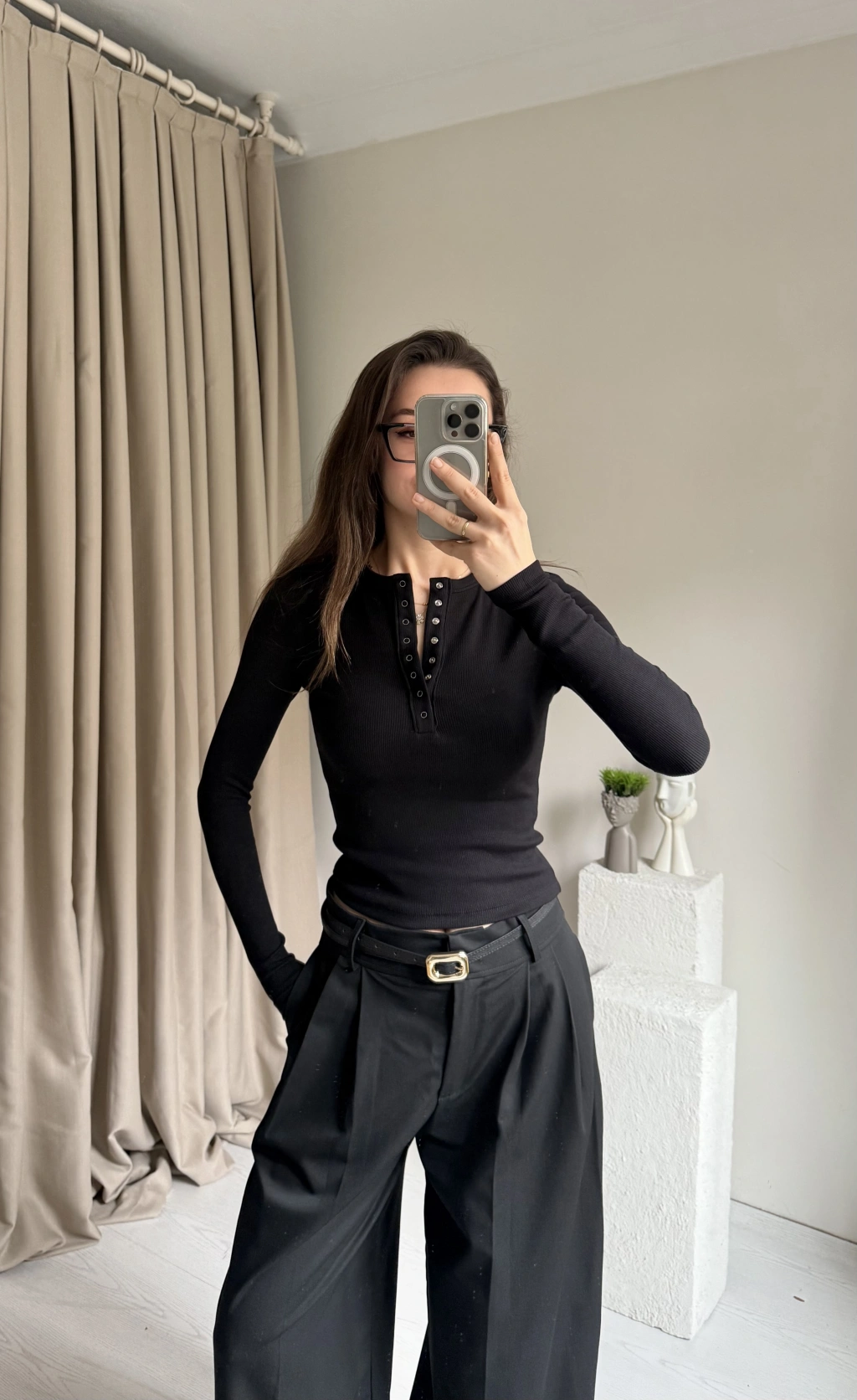 Siyah Çıtçıtlı Kaşkorse Bluz
