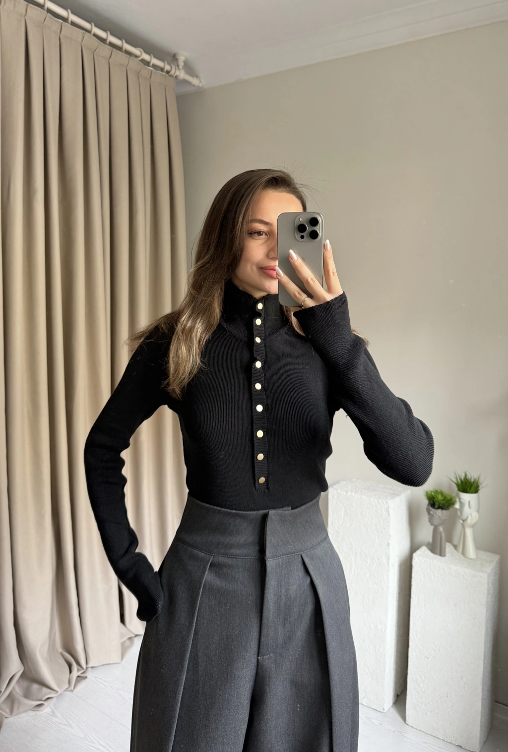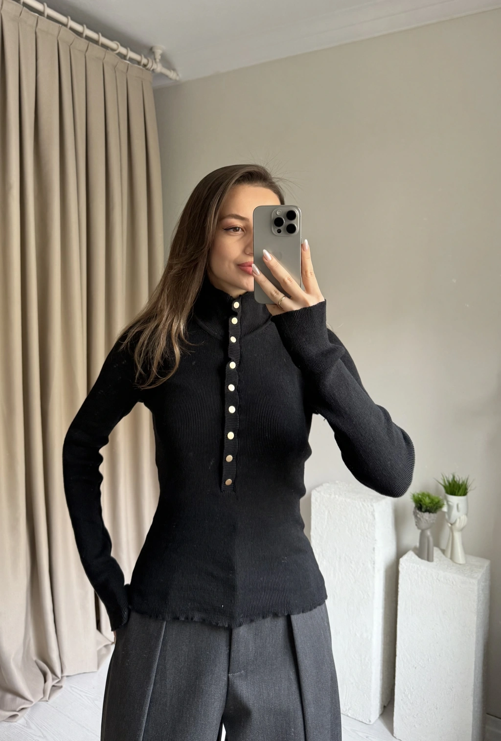 Siyah Çıtçıtlı Triko Premium Kazak