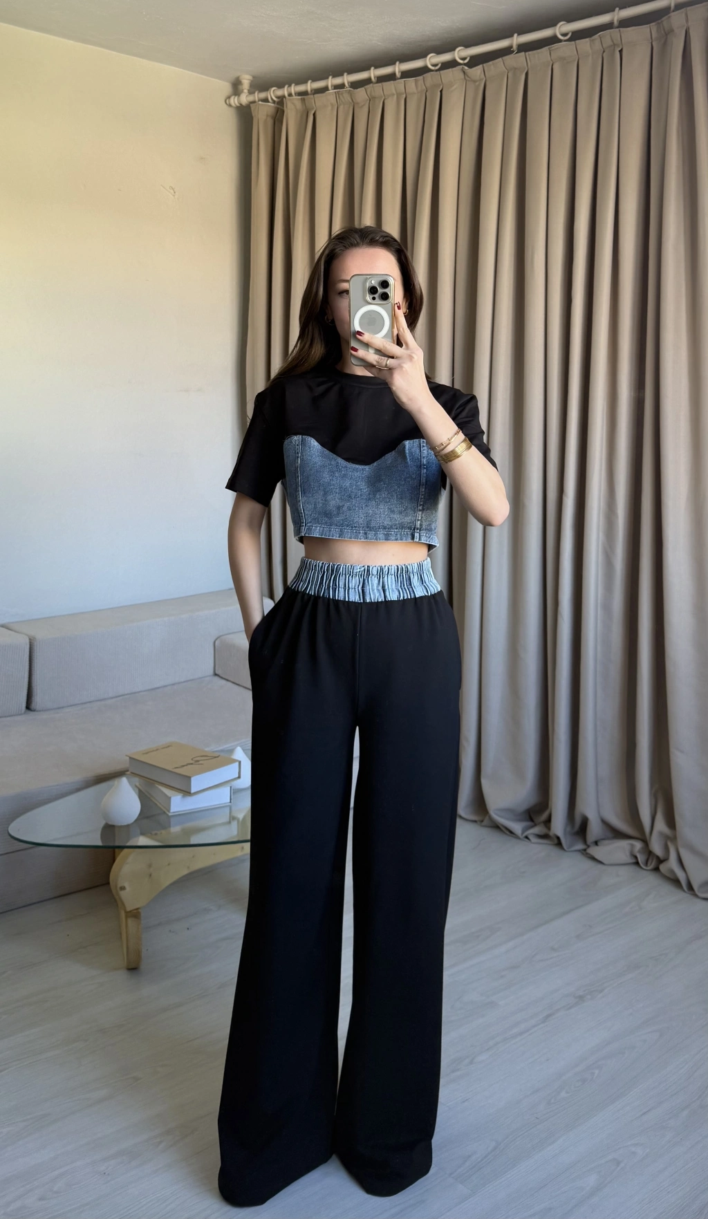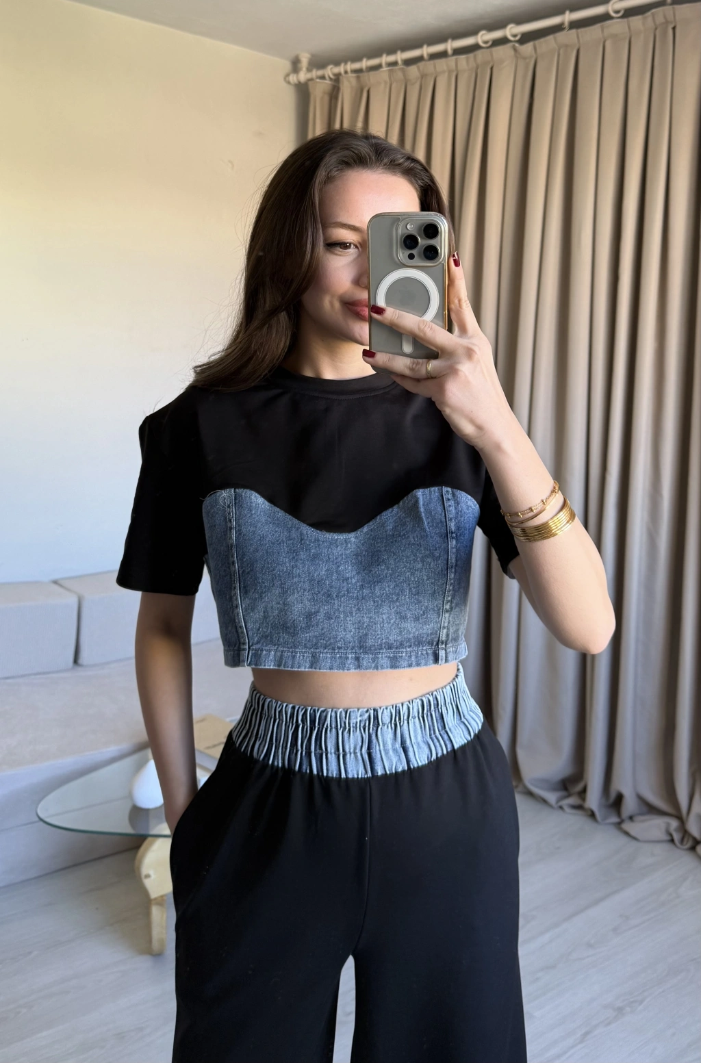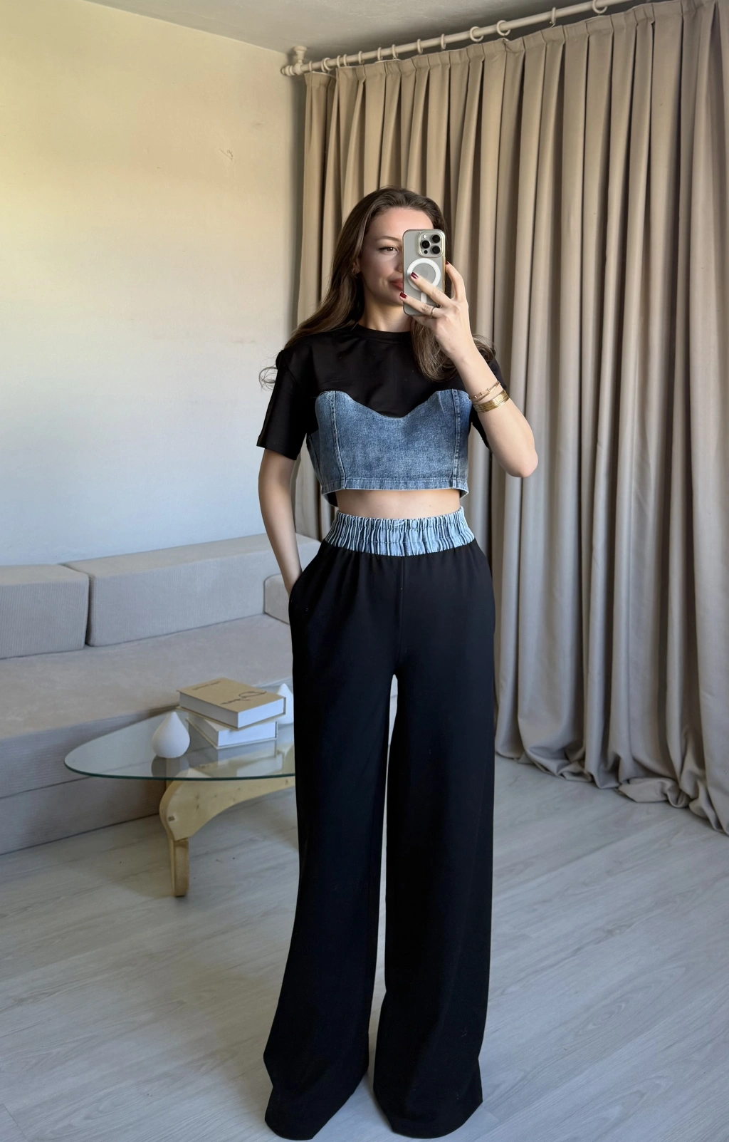 Siyah Denim Detaylı Eşofman Takım