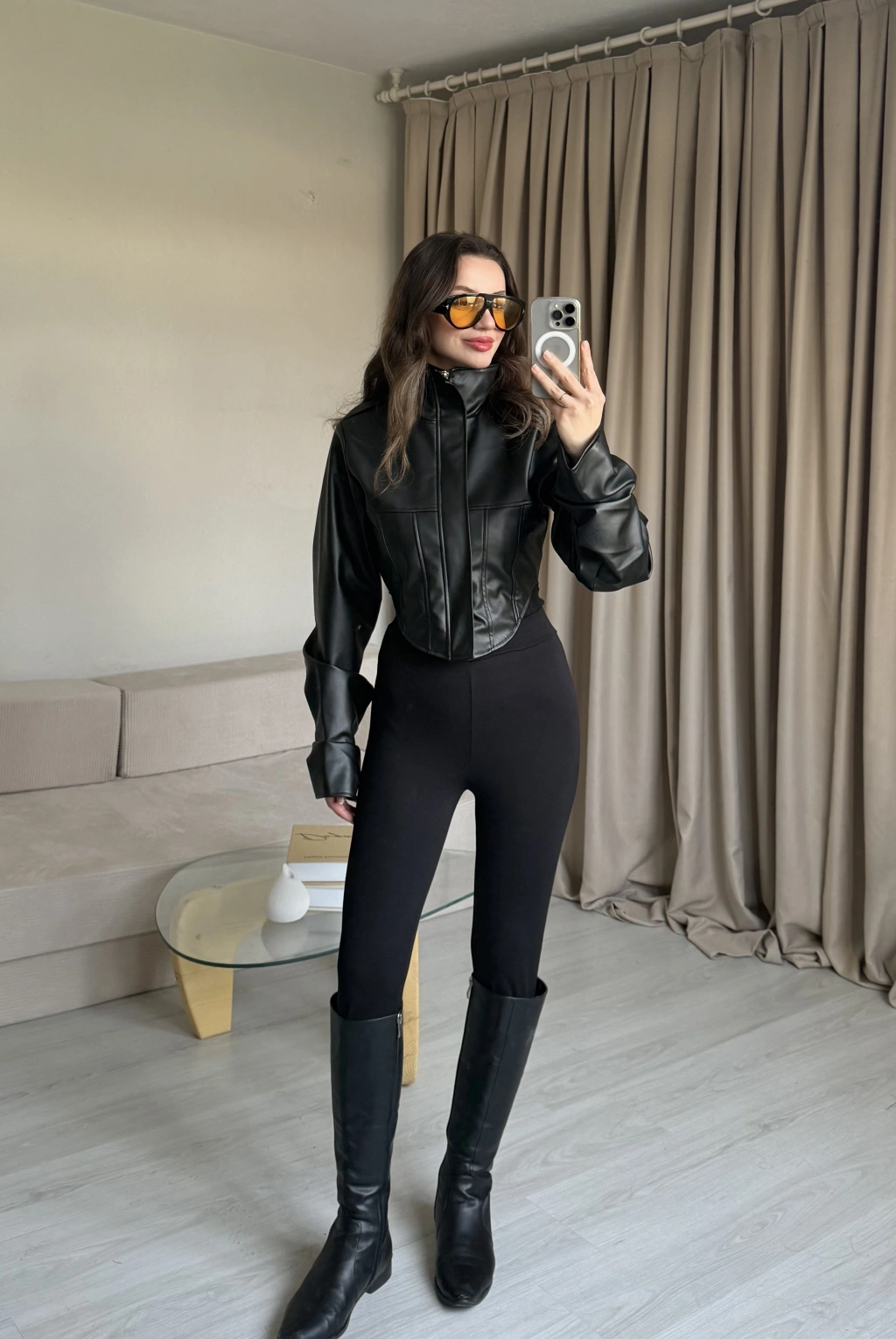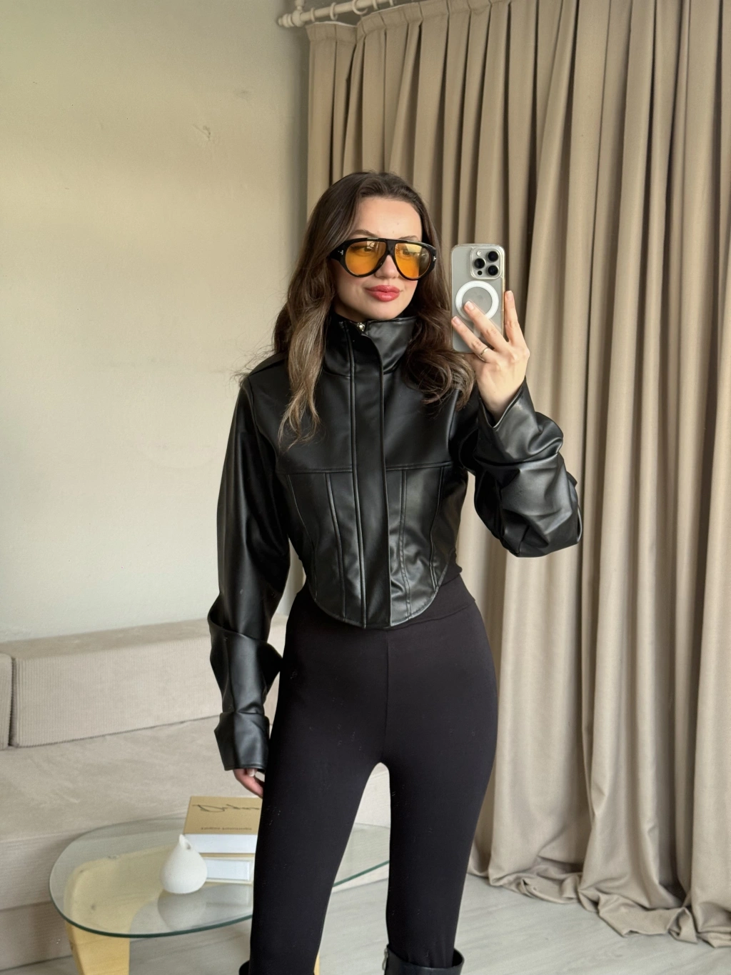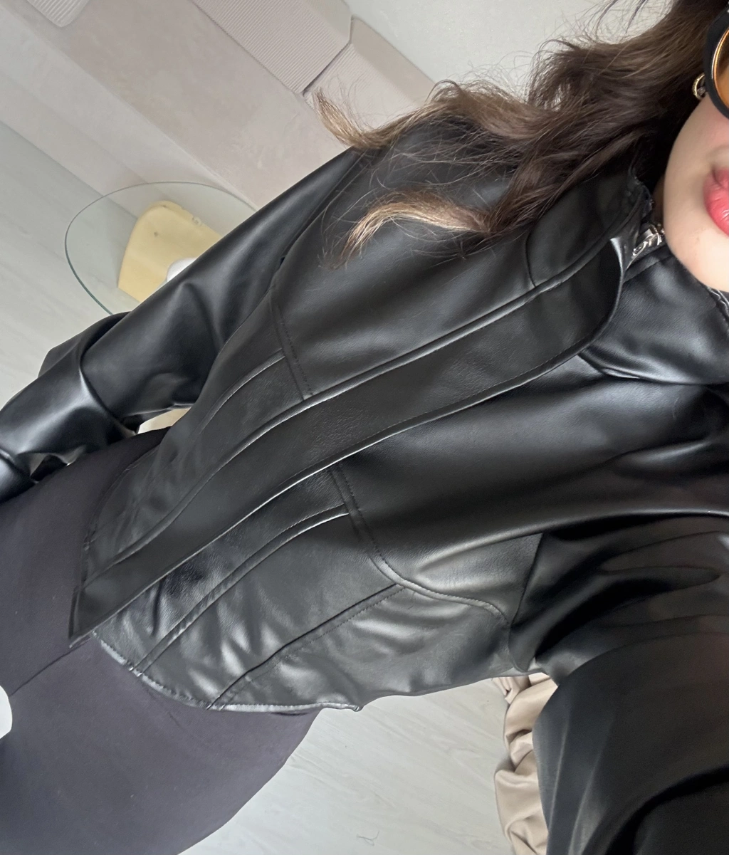 Siyah Korse Kesim Deri Ceket