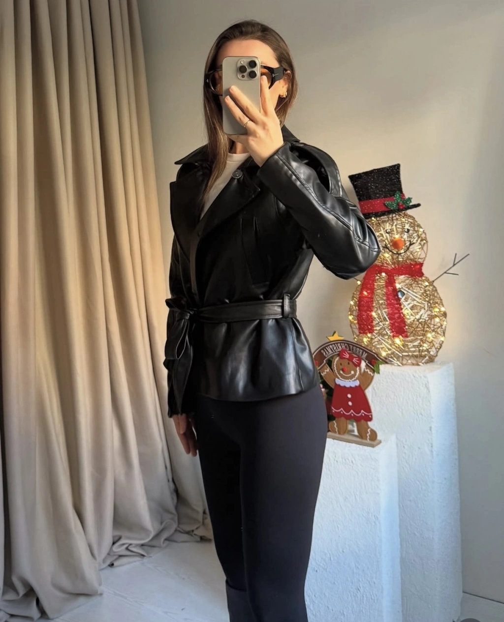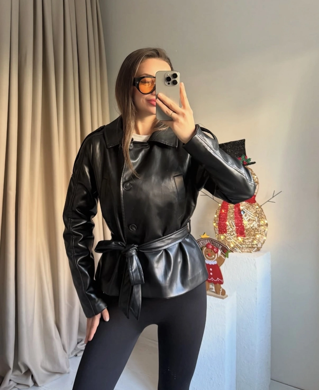Siyah Kuşaklı Deri Ceket
