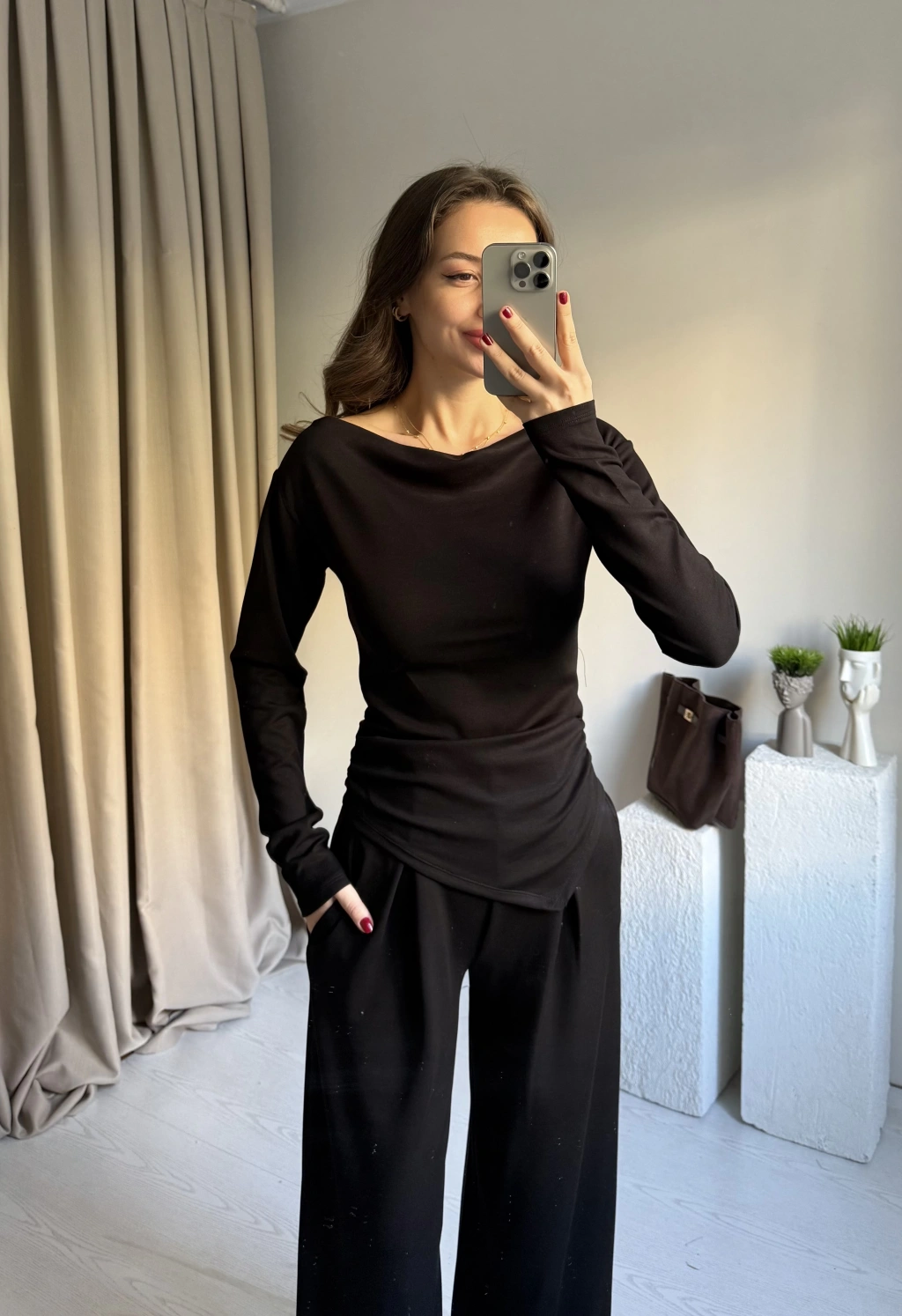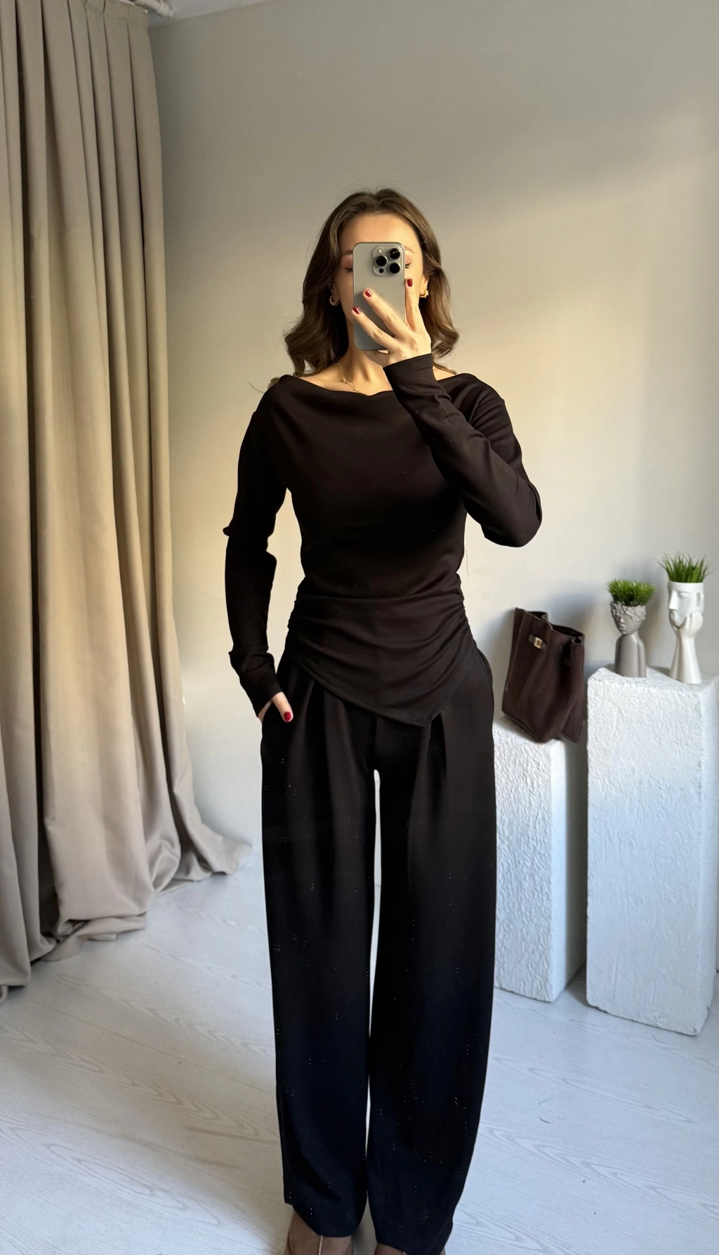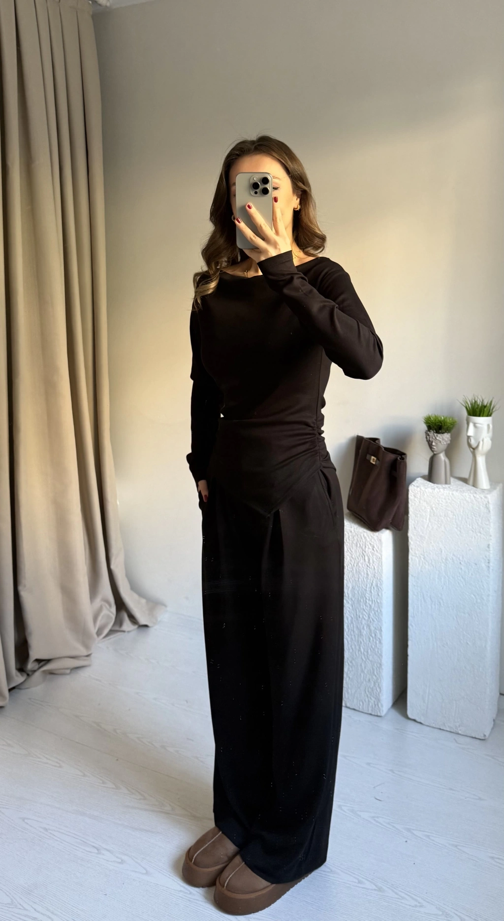 Siyah Üçlü Konfor Seti (bluz+hırka+eşofman)