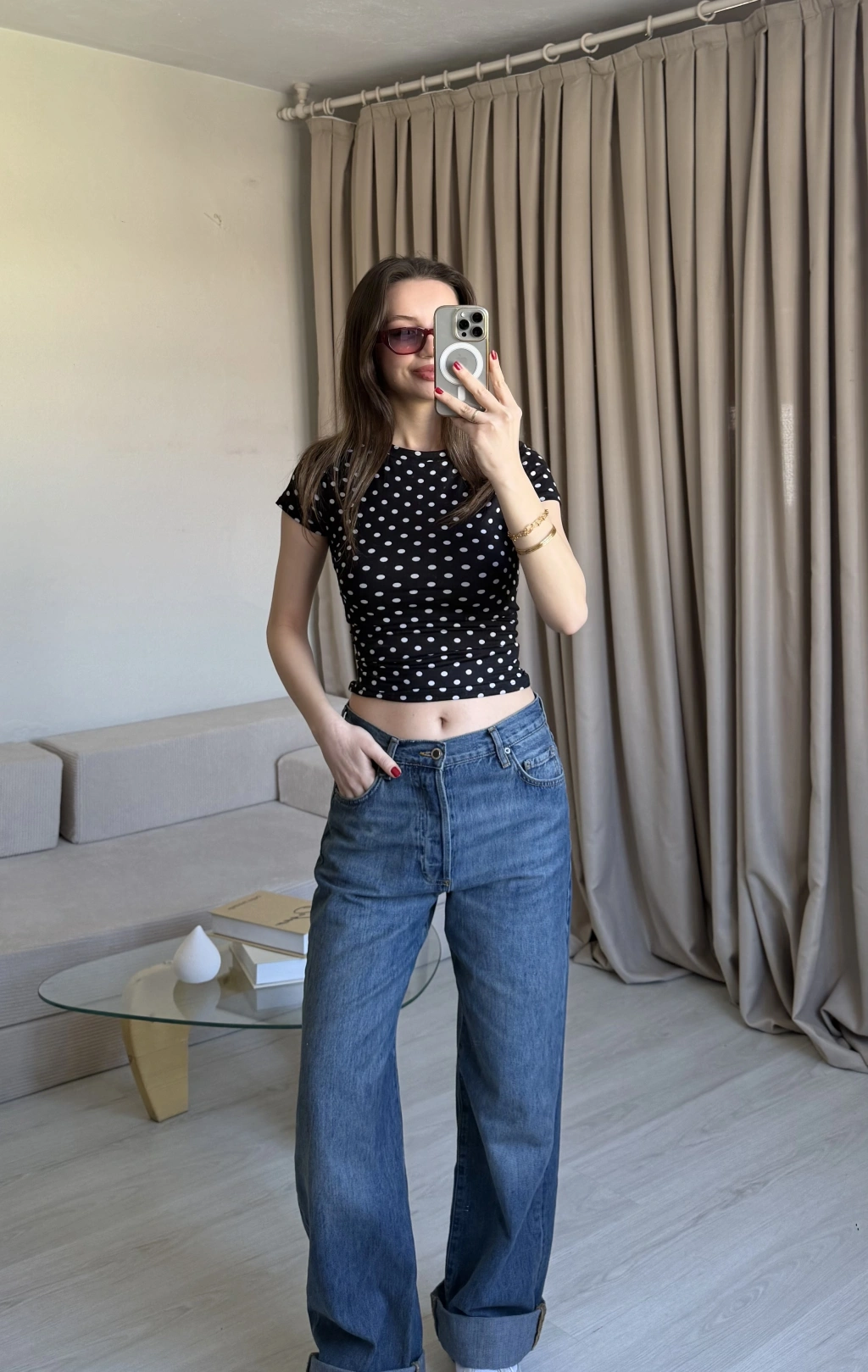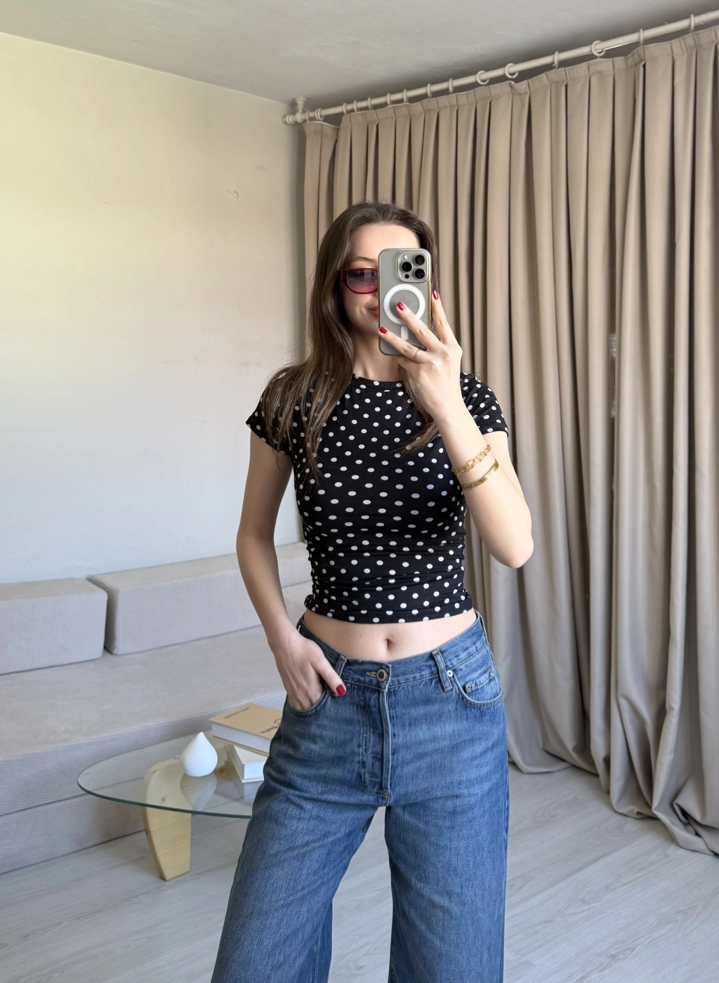 Siyah Puantiyeli Basic Kısa Kol Bluz
