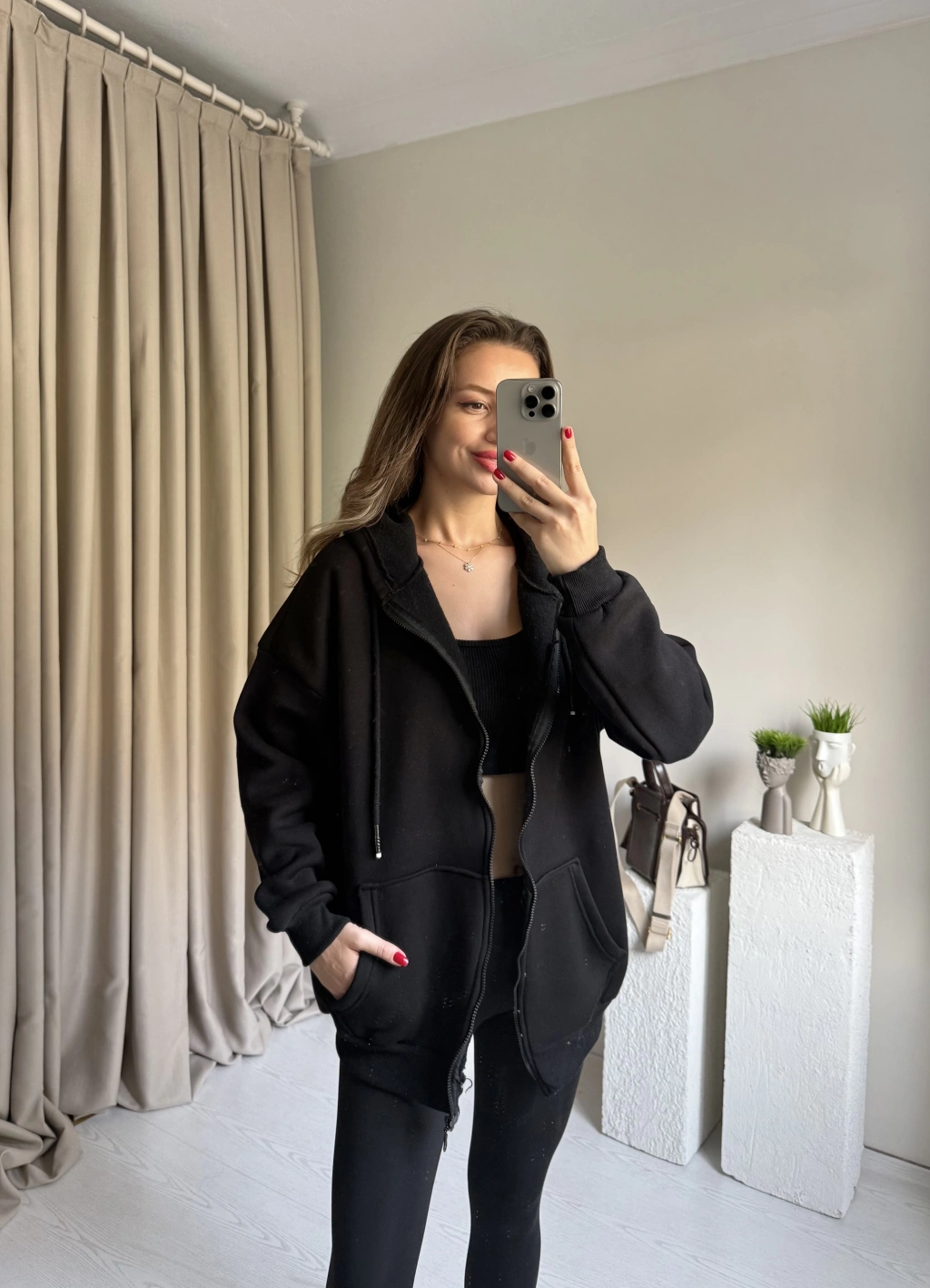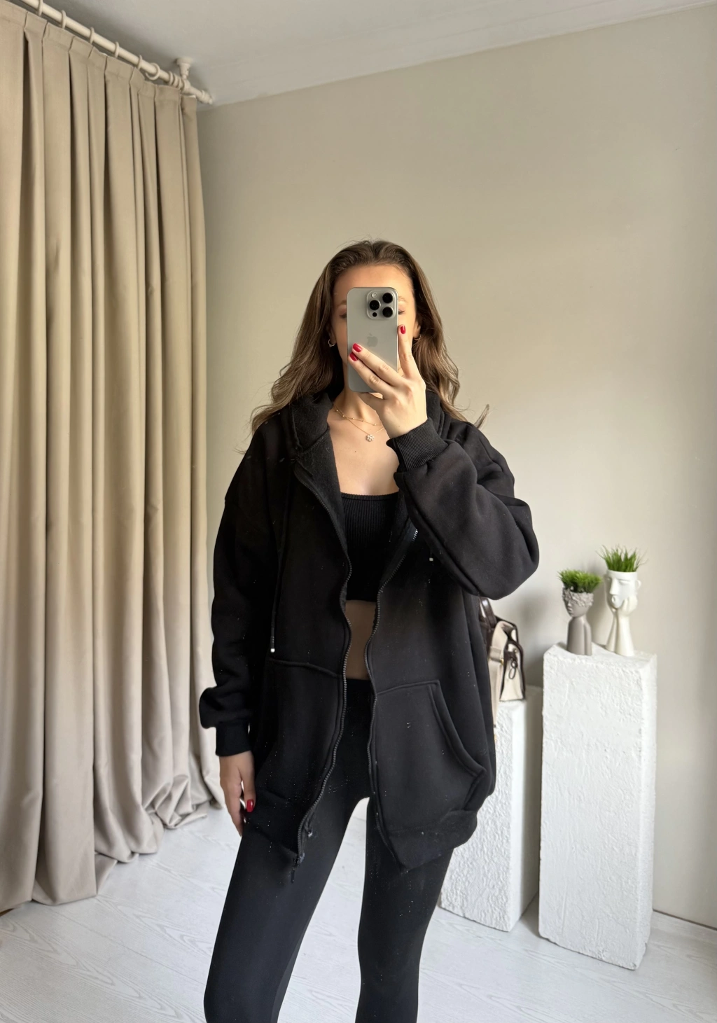 Siyah Üçlü Konfor Seti (bluz+hırka+eşofman)