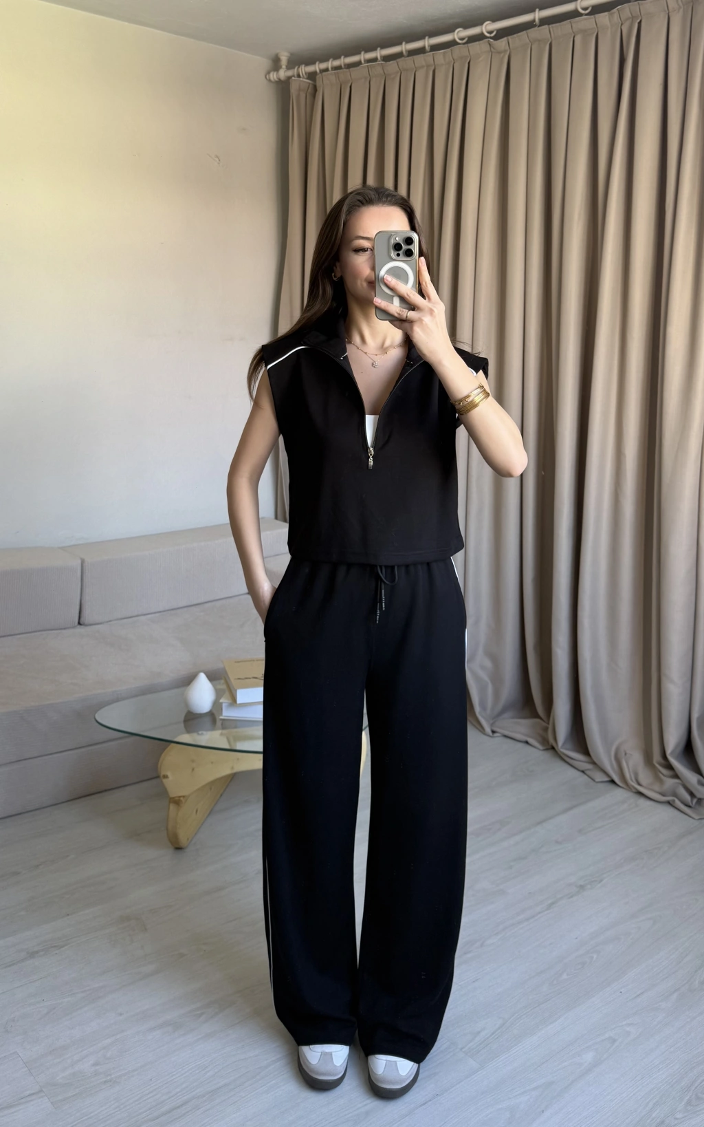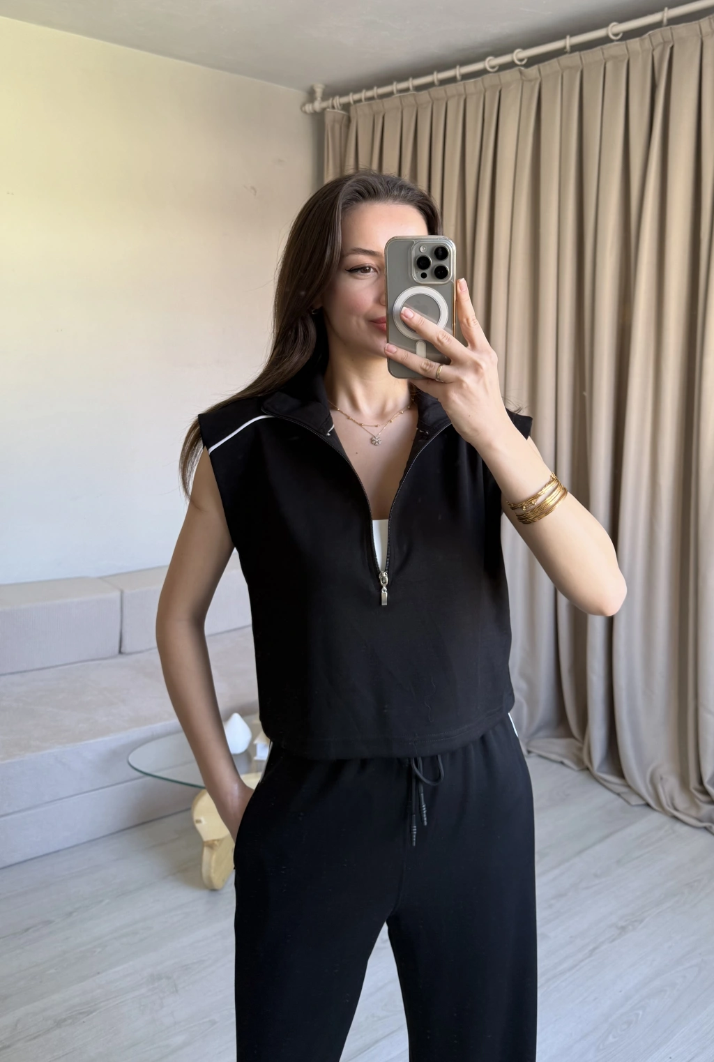 Siyah Yarım Fermuarlı Eşofman Takım