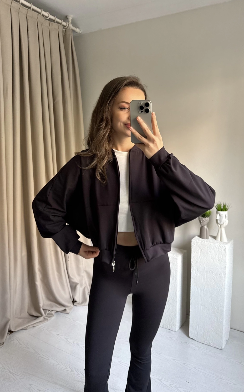 Siyah Zra Model Bomber Tayt Takım