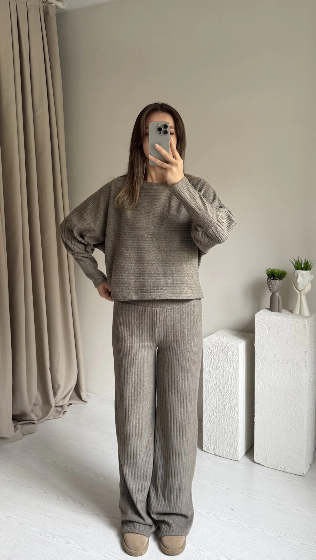 Antrasit Üçlü Konfor Seti (bluz+hırka+eşofman)