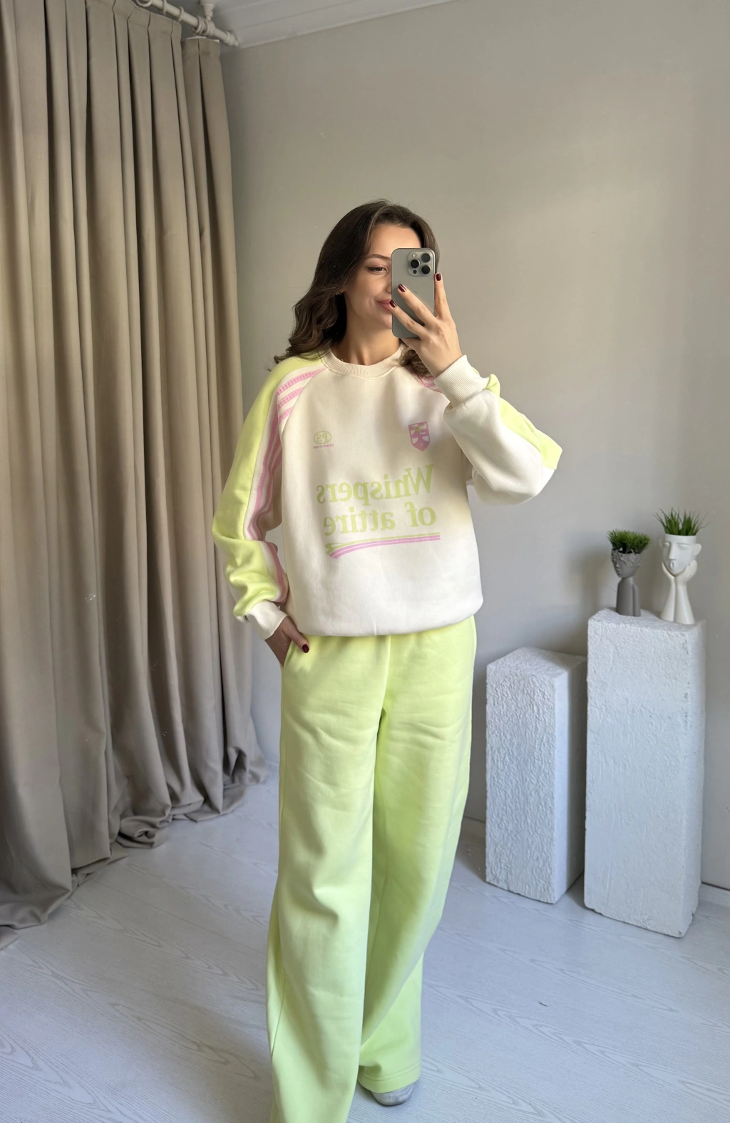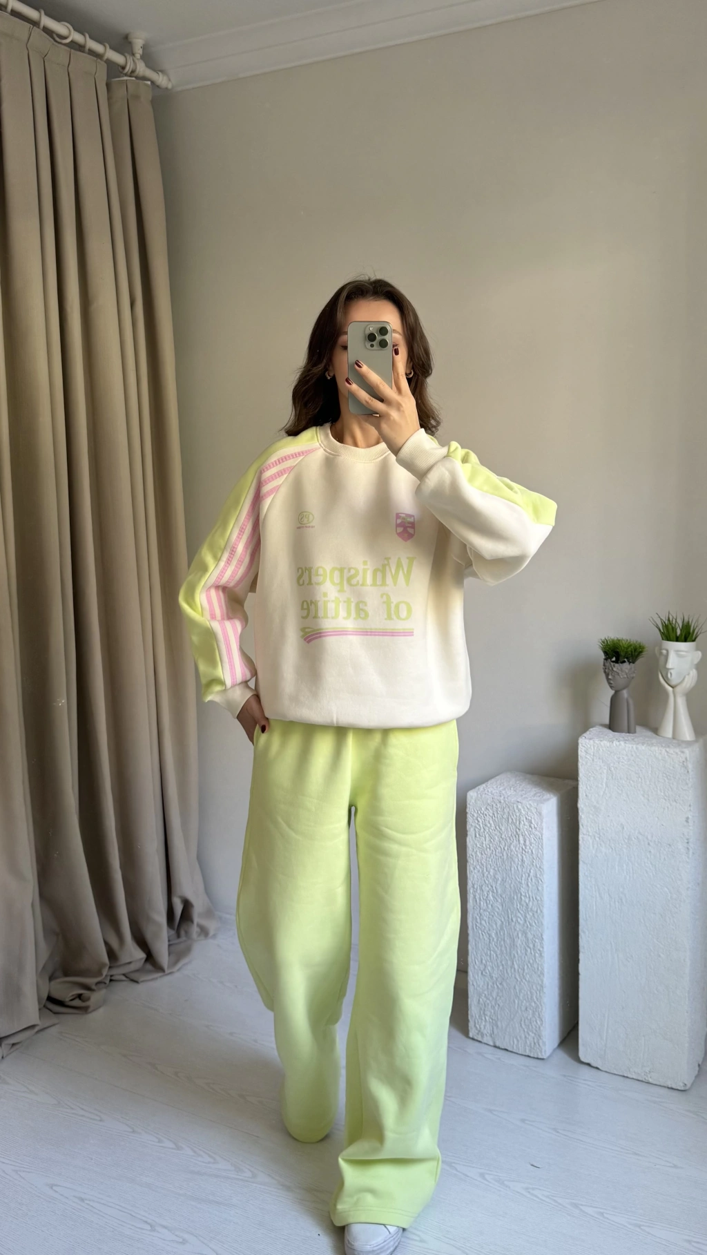 Beyaz Üçlü Konfor Seti (bluz+hırka+eşofman)